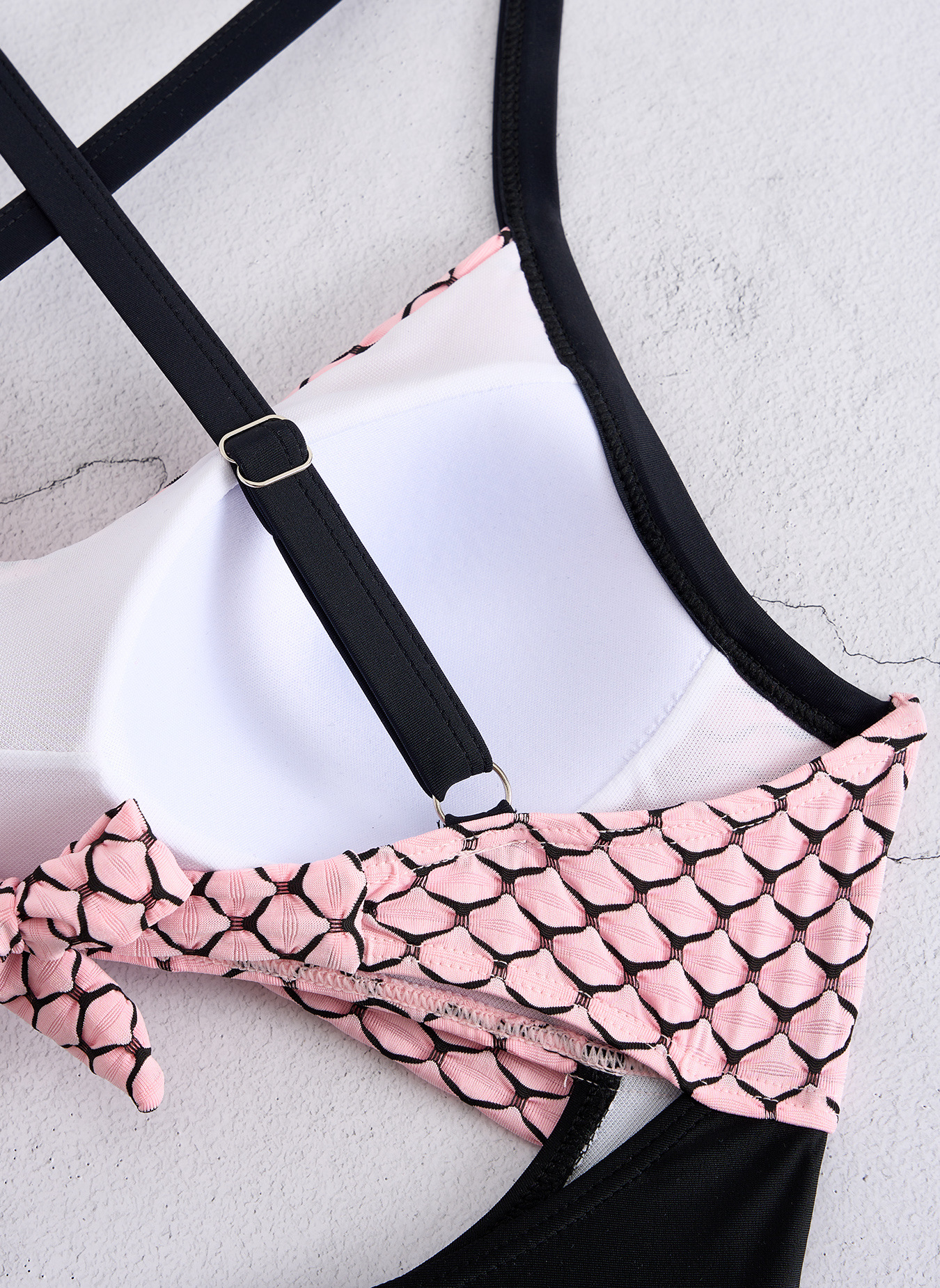 交叉绑带定制比基尼粉色鱼鳞高腰欧美女纹路性感绑带biniki女连体
