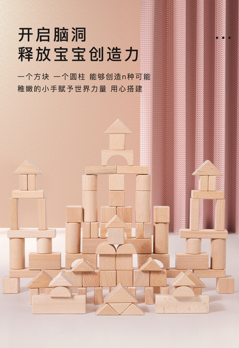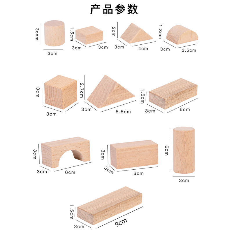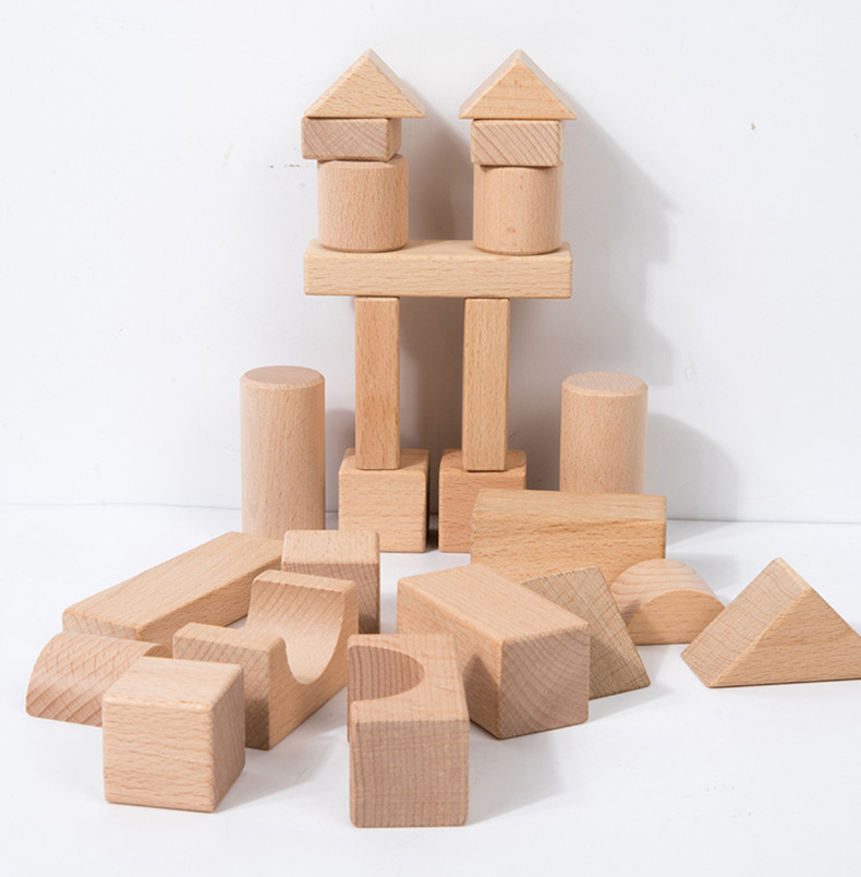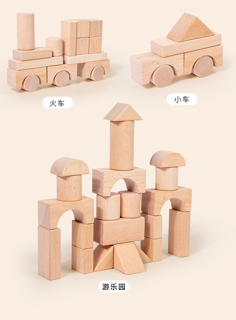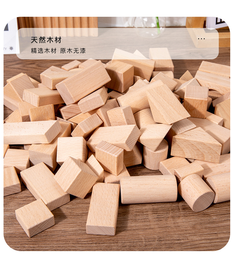 散装榉木大颗粒无漆积木木制建构区桌面玩具幼儿园益智拼搭材料
