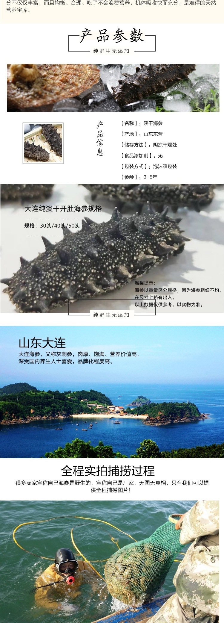 大连纯淡干海参干货深海刺参开肚辽参30头/40头/50头滋补品批发