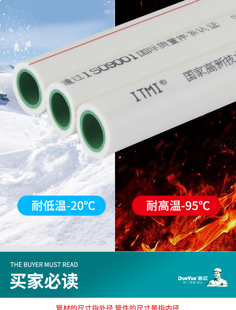 盾运ITMI ppr水管冷热水管4分家用热熔管双色防冻抗菌自来水管