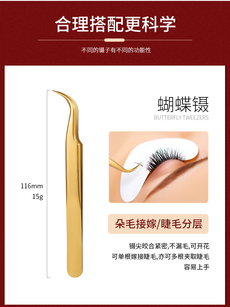 直销假睫毛镊子 美睫师自嫁接睫毛开花分毛金羽夹不锈钢工厂现货
