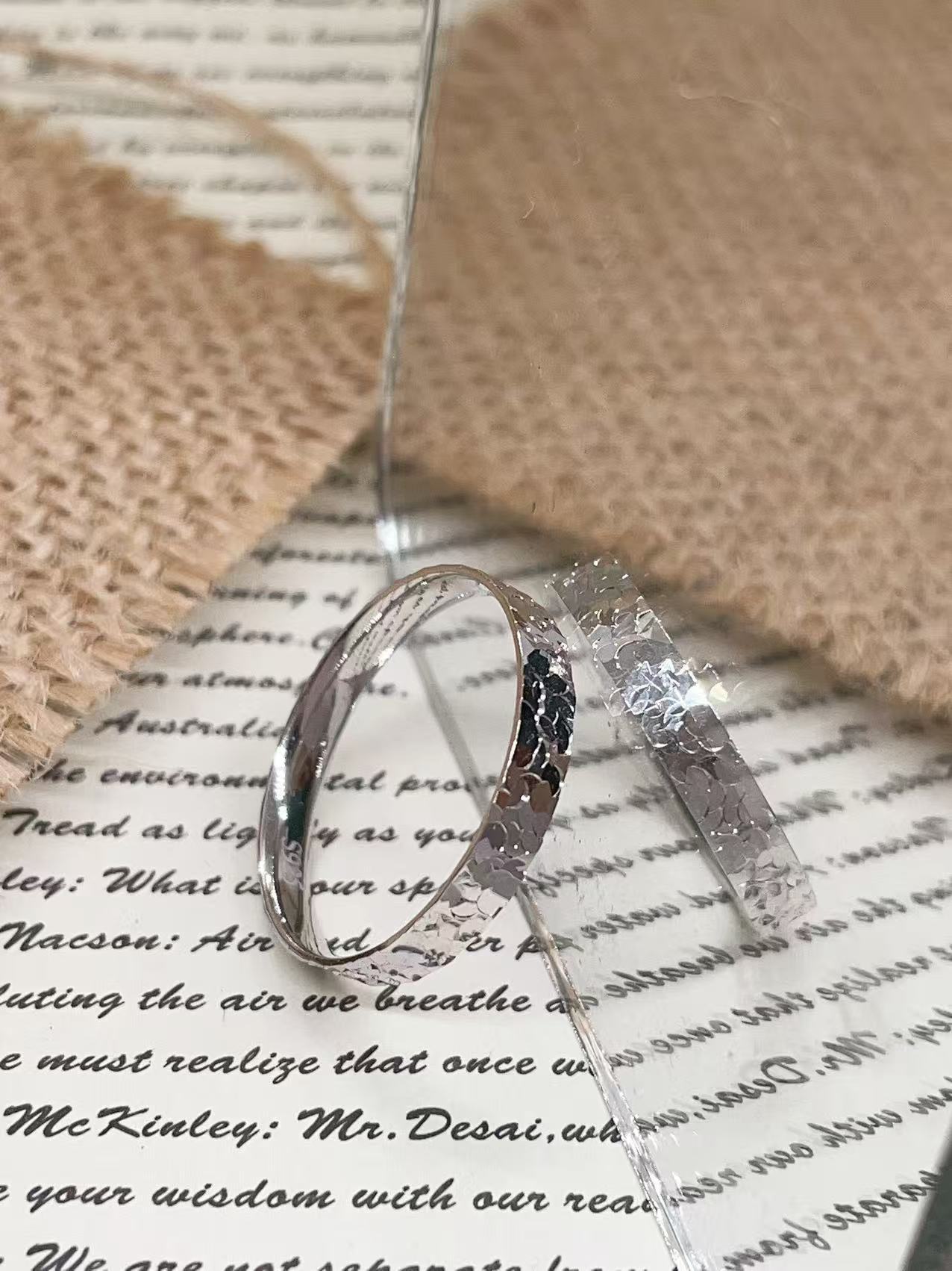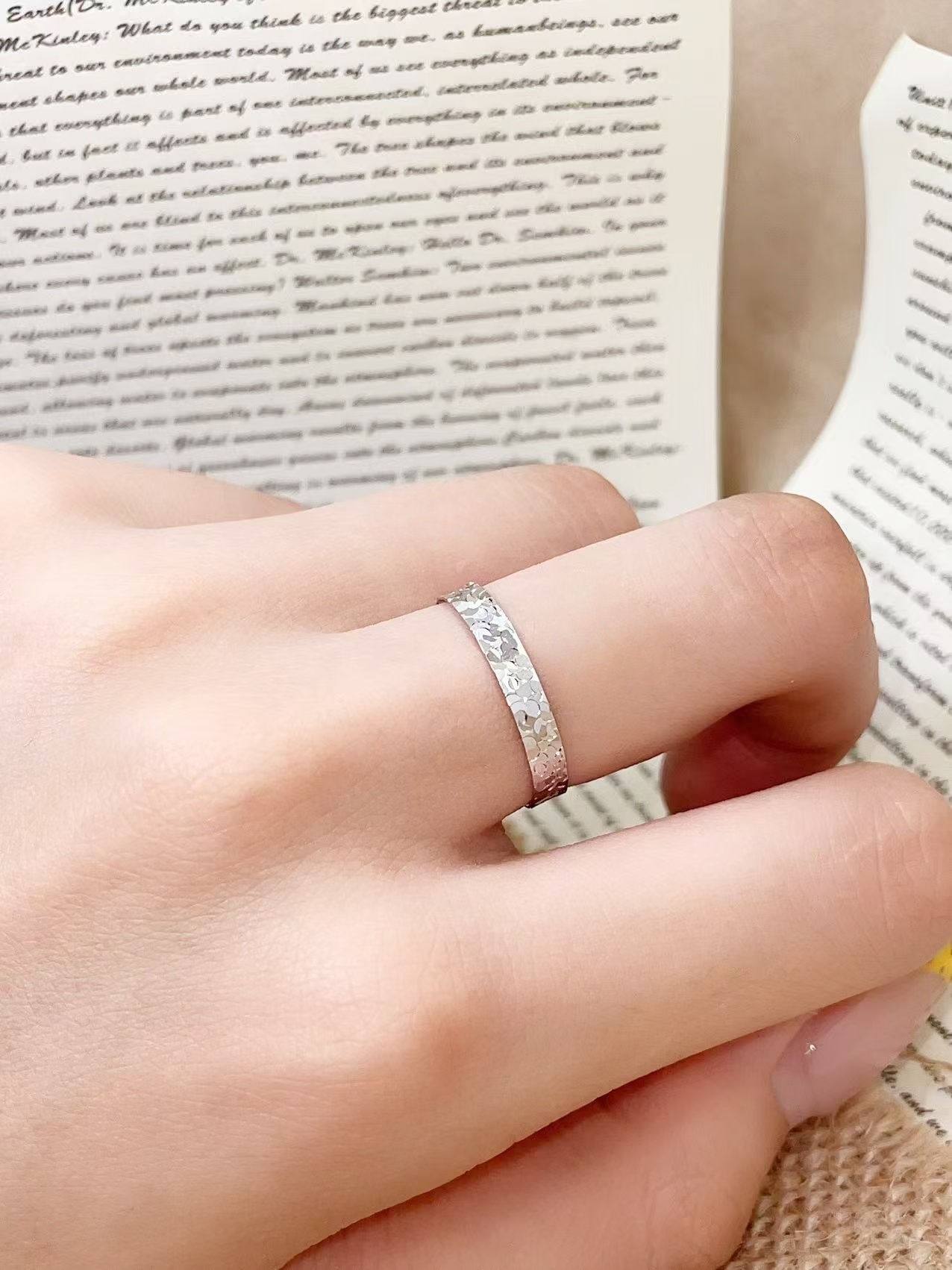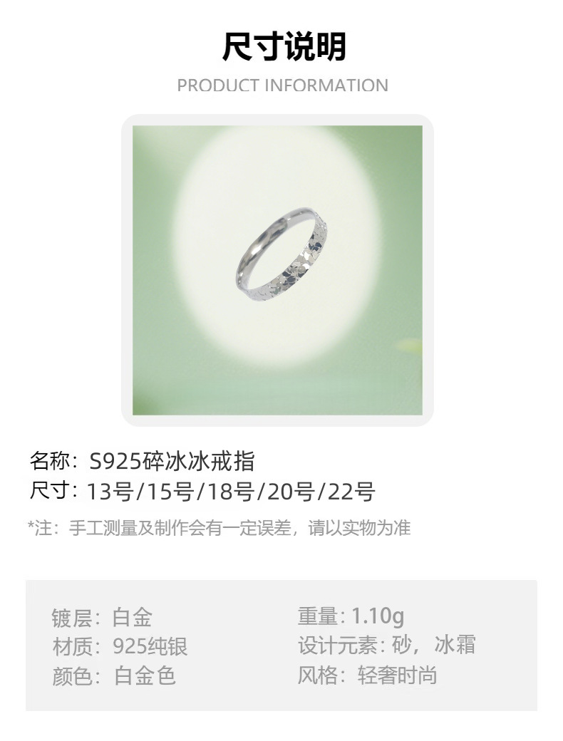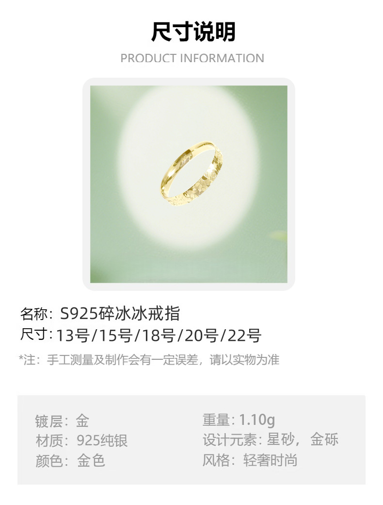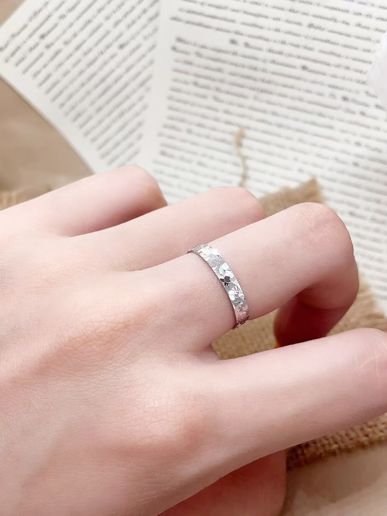 925银碎碎冰戒指k金色白金色情侣新款简约素圈闭口男女情人节礼物