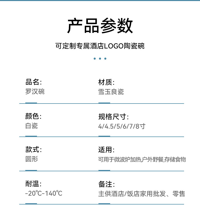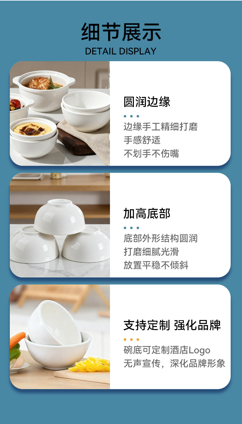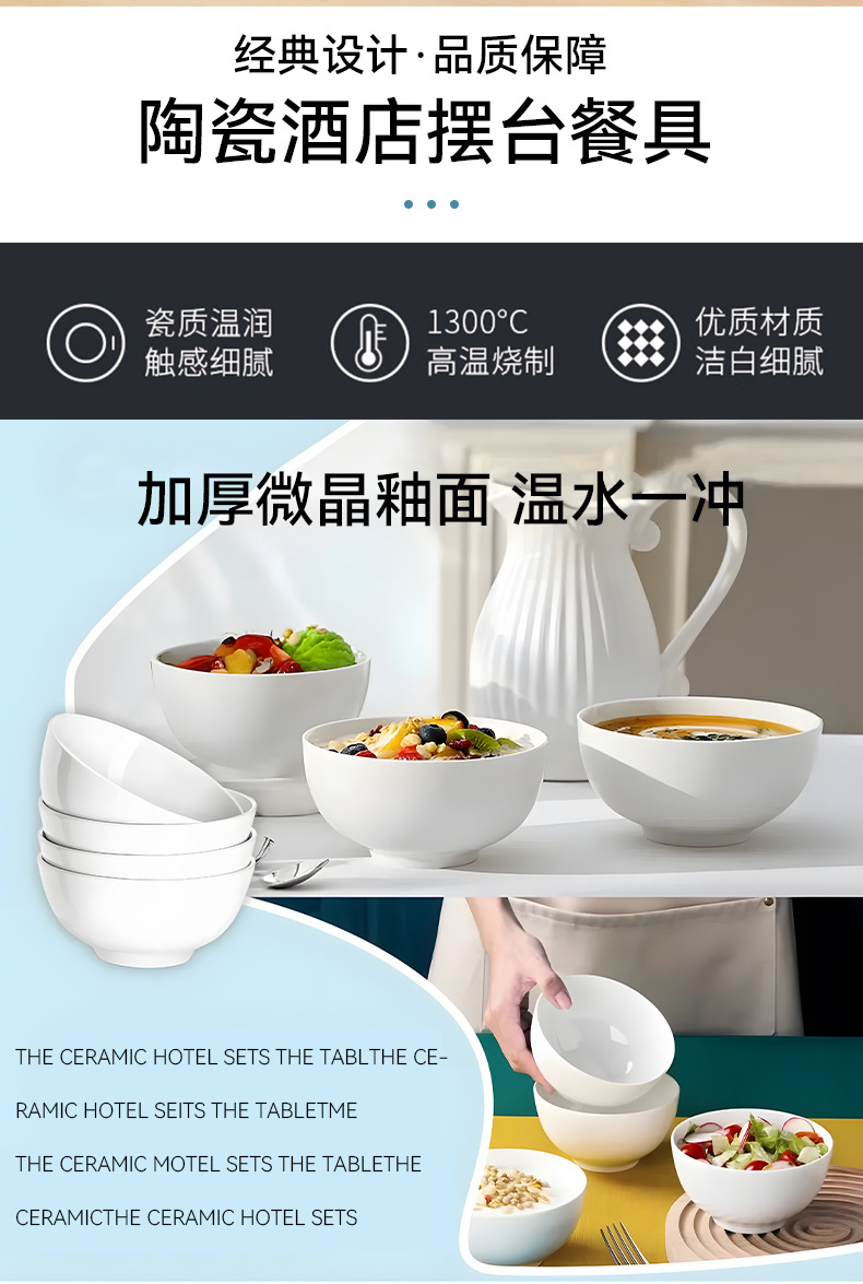 陶瓷餐具纯白陶瓷碗陶瓷加厚碗家用酒店用品碗餐厅用品拉面碗