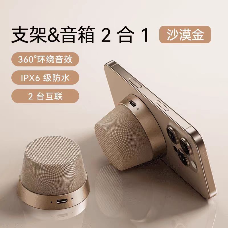 跨境磁吸包布蓝牙音箱高颜值高质感便携式音响手机支架低音炮