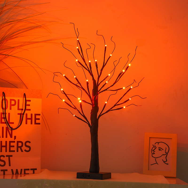 万圣节枯枝小树灯枫叶南瓜幽灵蜘蛛小夜灯派对房间场景布置装饰灯