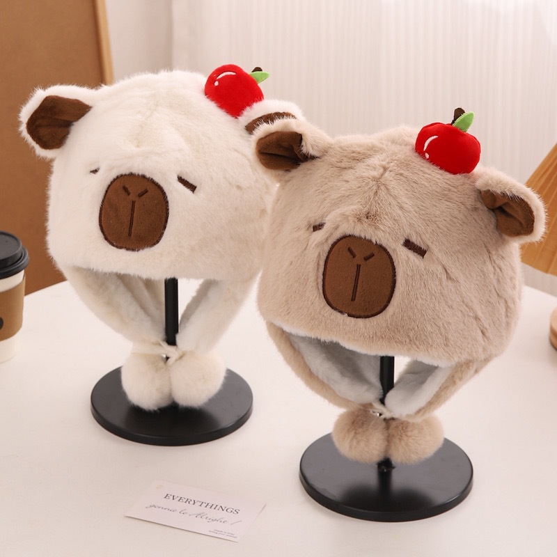 可爱卡皮巴拉毛绒帽儿童男女秋冬季卡通护耳帽防寒保暖雷锋帽批发