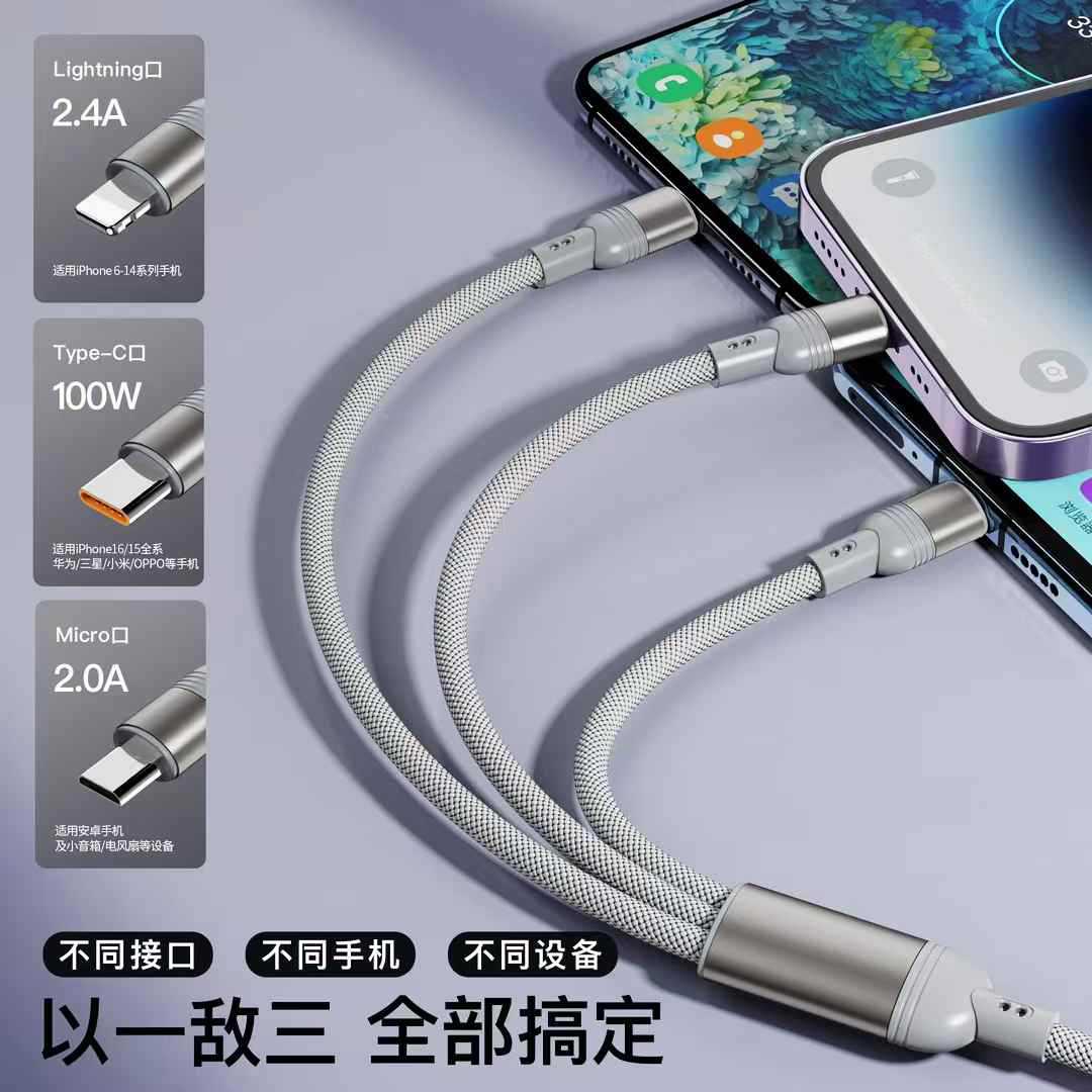 \ \ \二拖三快充100W编织数据线适用安卓Type-c苹果华为超级快充充电线,批发价,价格:6.8,厂家直销,二拖三快充100W编织数据线适用安卓Type-c苹果华为超级快充充电线,免费拿样。