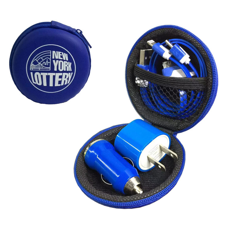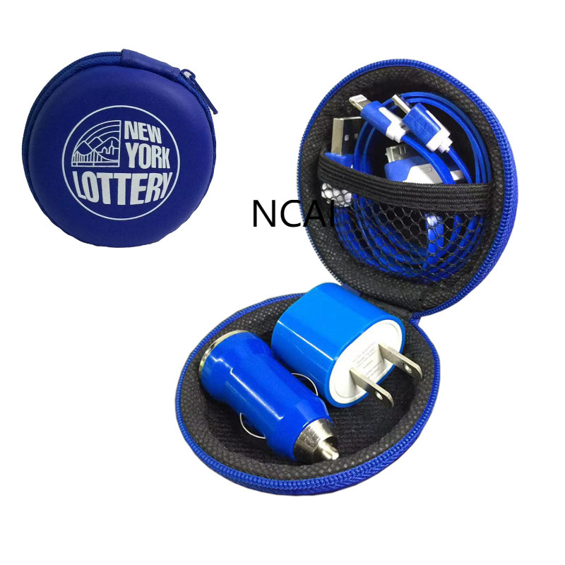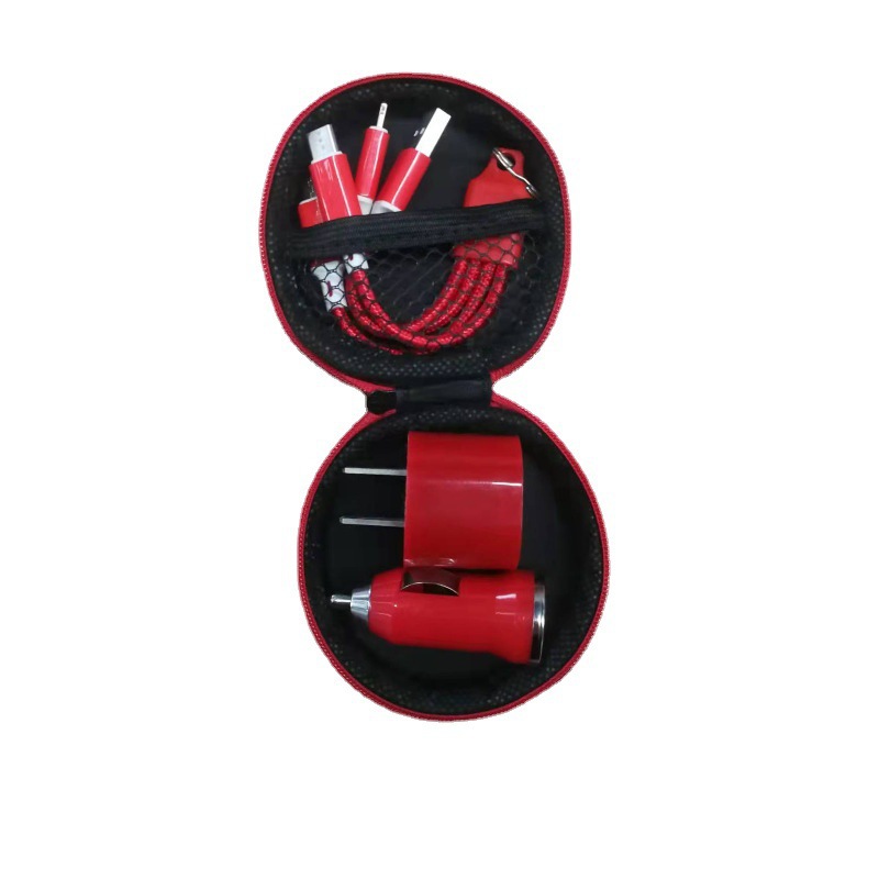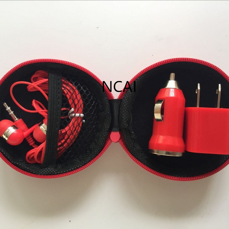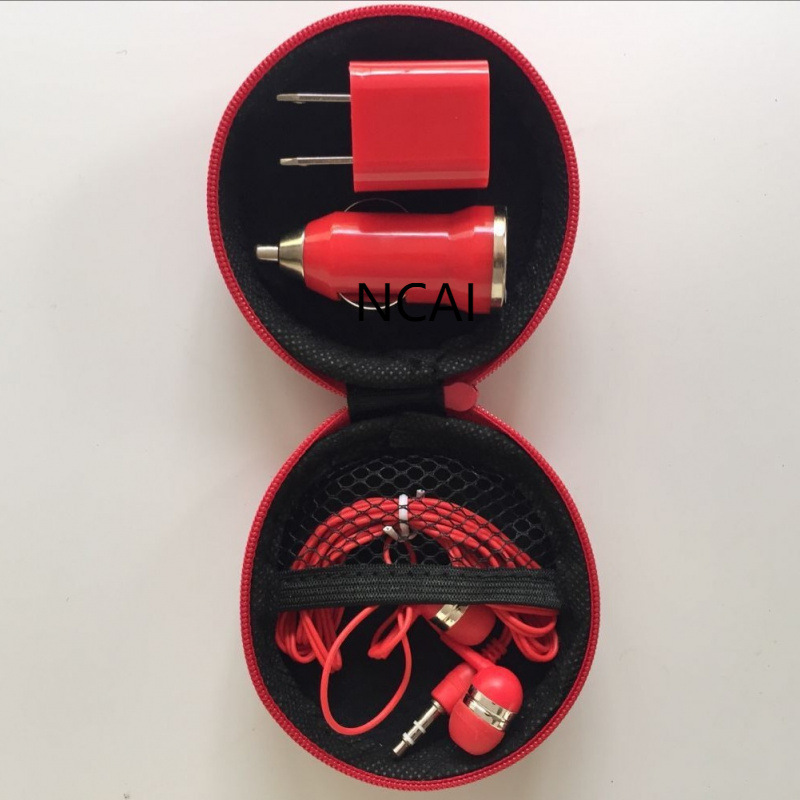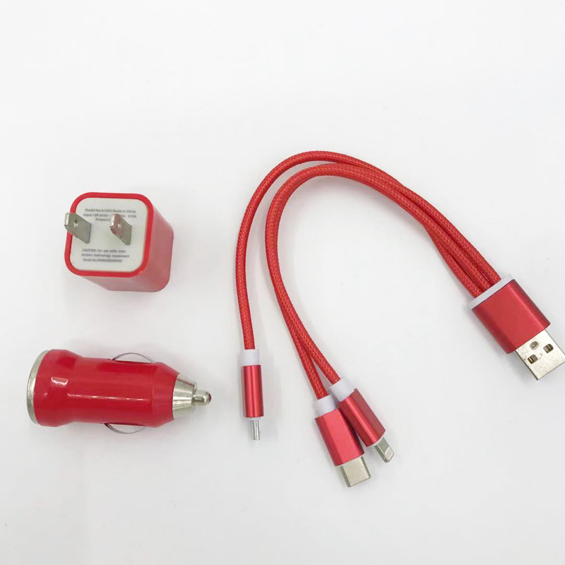 迷你车载手机充电器商务旅行套装车充墙插耳机三合一三件套汽车
