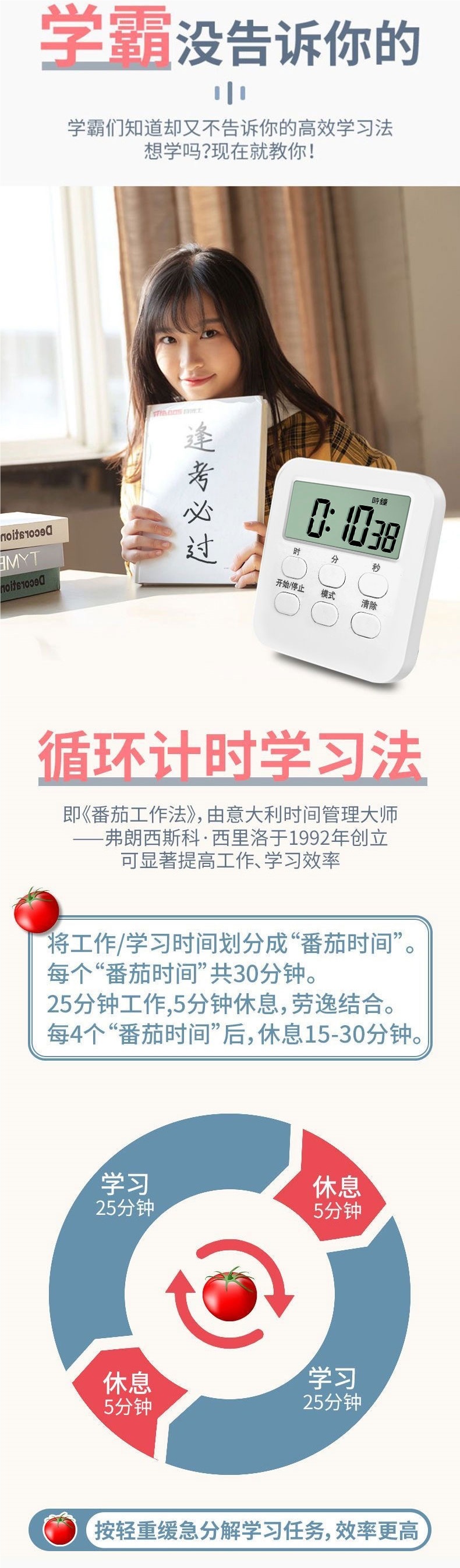 计时器定时器电子厨房学生学习提醒器闹钟儿童自律多功能表倒计时