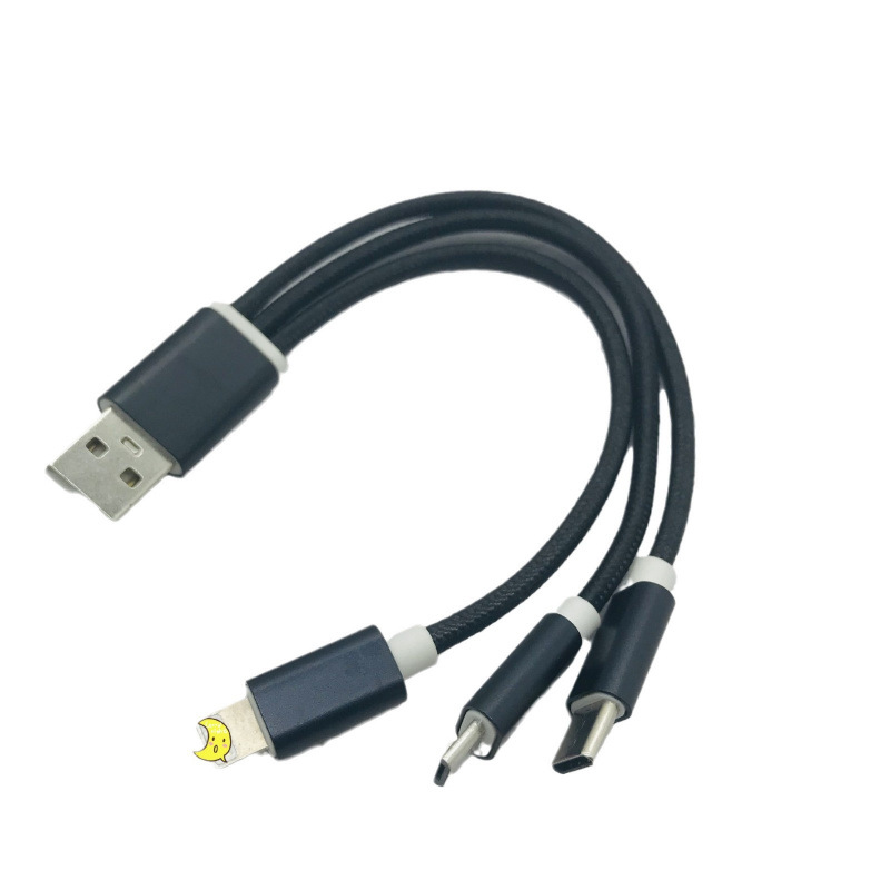 一拖三数据线适用苹果安卓TypeC手机三合一发光线编织线快充