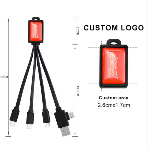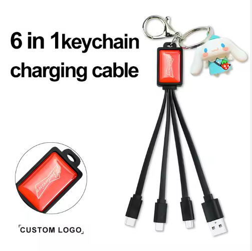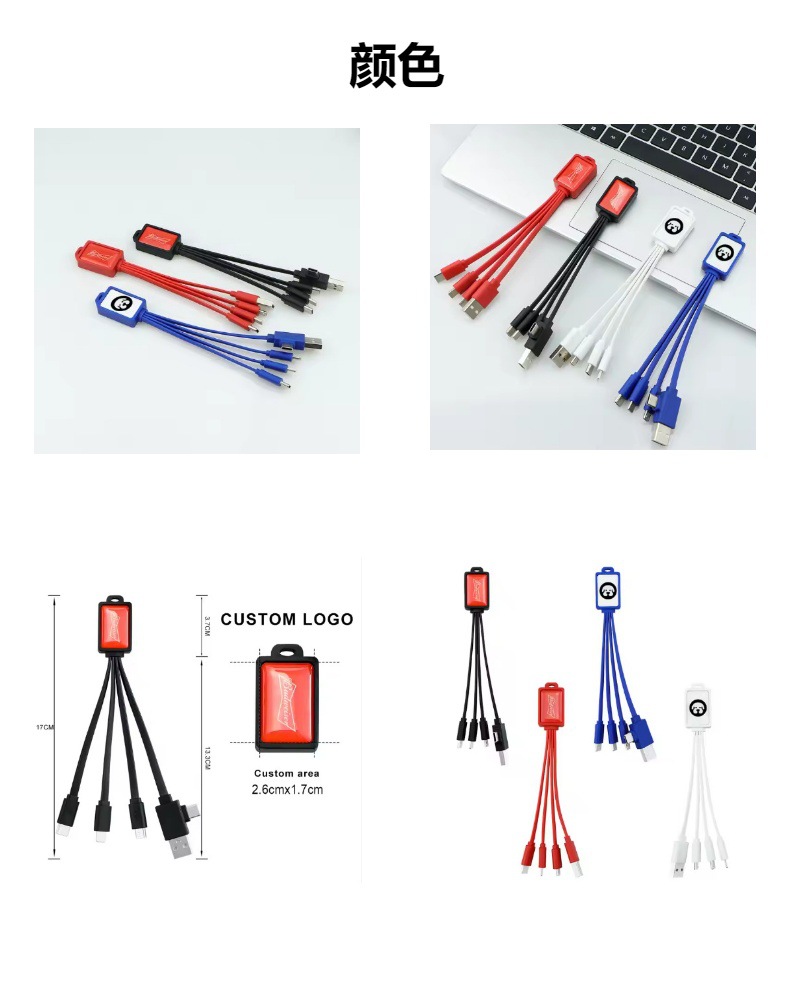 发光logo数据线多合一手机充电线安卓钥匙扣USB数据线便携二合一