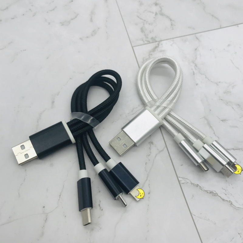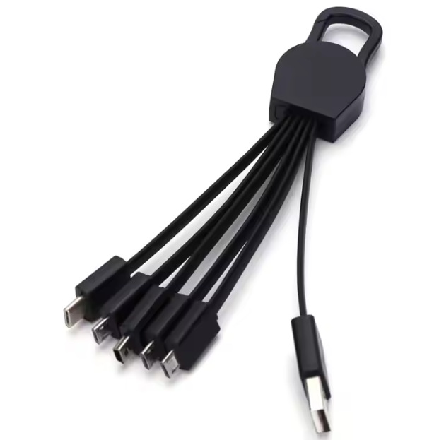 厂家直供尼龙编织六合一数据线礼品手机充电线钥匙扣二拖三数据线