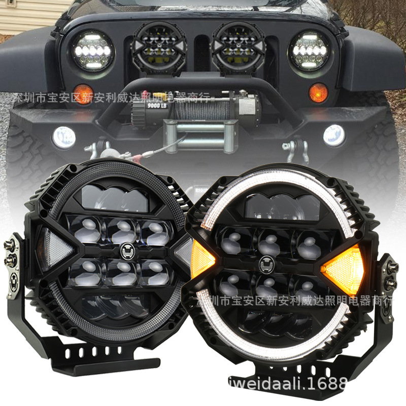 新品LED灯适用吉普牧马人通用越野改装9寸前杠射灯车顶灯