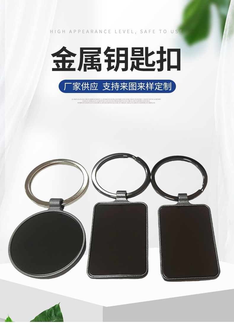 两面钛钢贴片金属钥匙扣定制雕刻logo简单小礼品广告礼品印刷滴胶