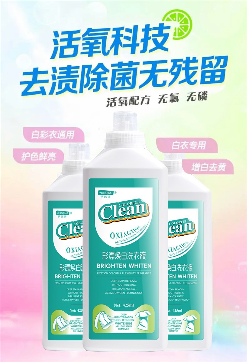 爆款伊洁清彩漂焕彩洗衣液 厂家直发代发 活氧去渍抑菌焕白溶解剂