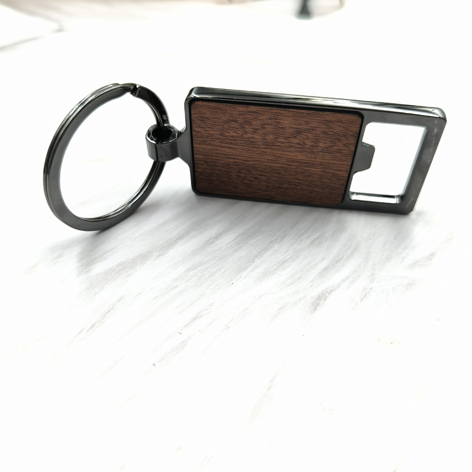 长方形木制金属钥匙扣开瓶器激光印刷logo简约创意榉木梨花木竹礼