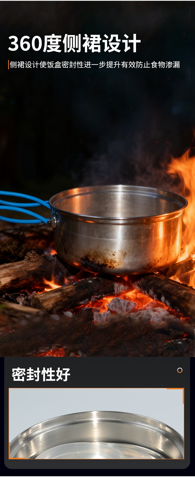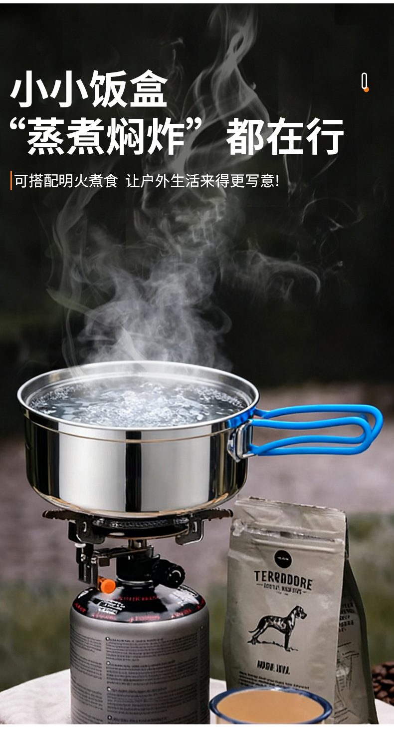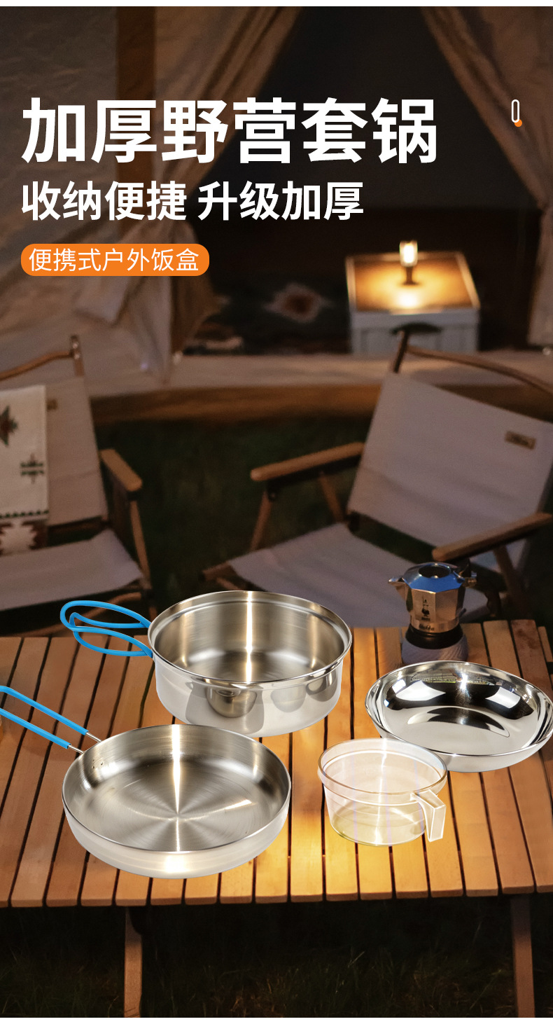 户外不锈钢套锅四件套便携野营折叠收纳饭盒露营野炊煎锅锅具套装