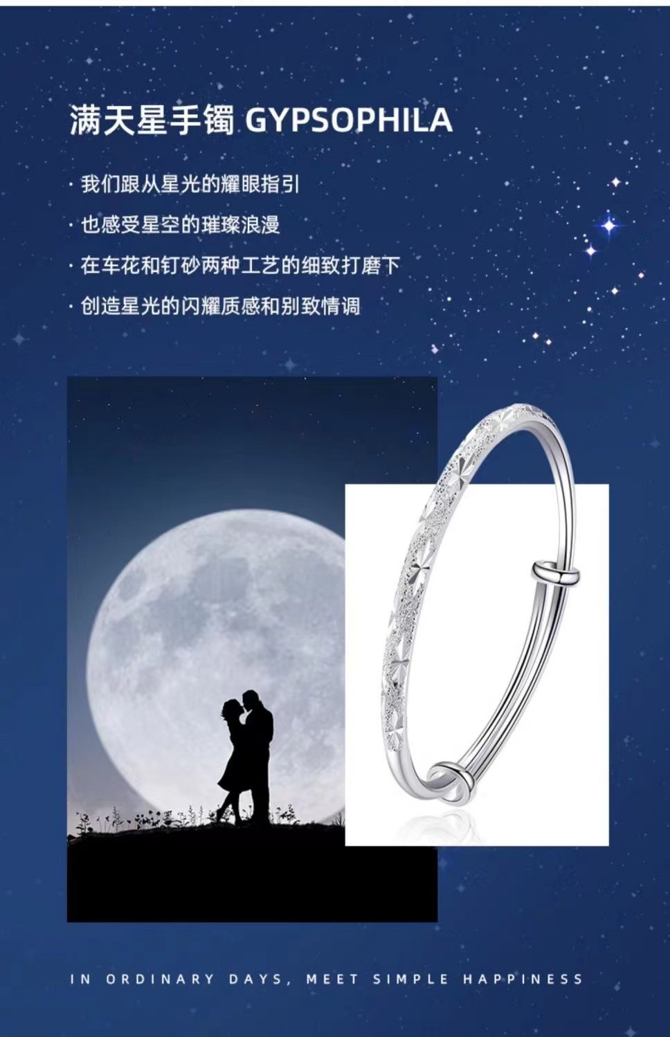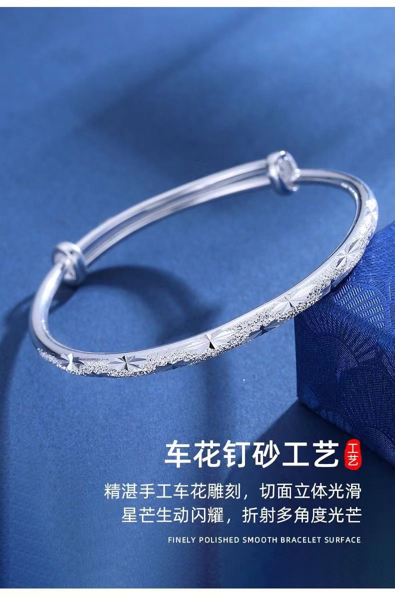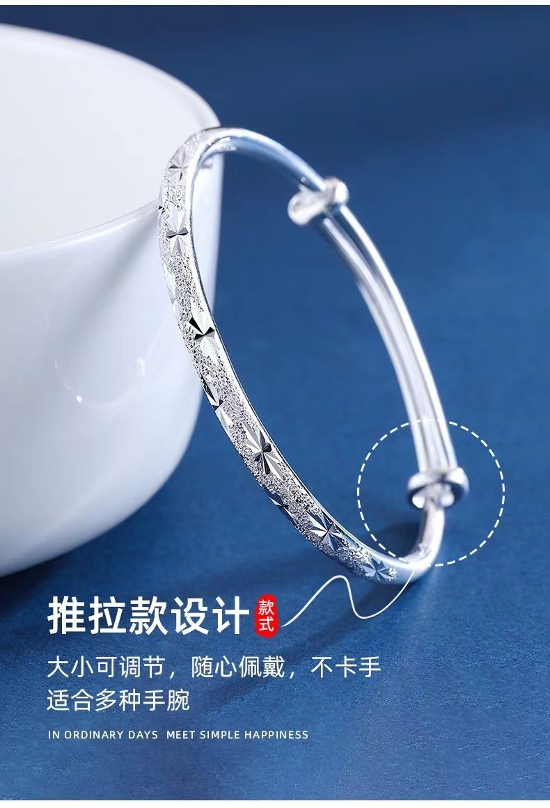银手镯女9999纯银满天星实心推拉时尚足银镯子送女友闺蜜生日礼物