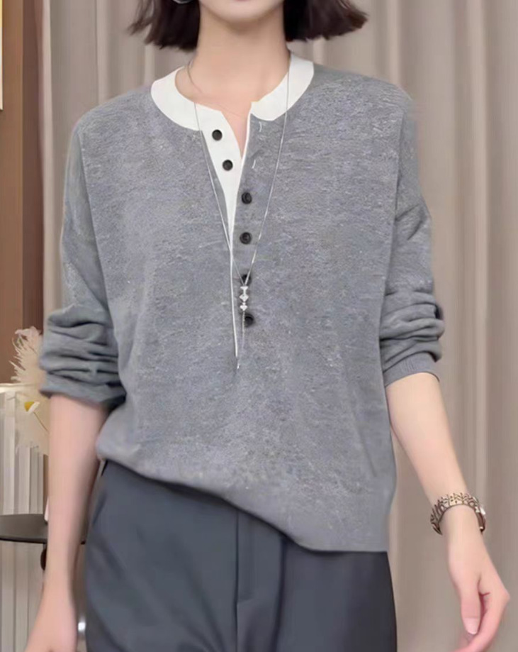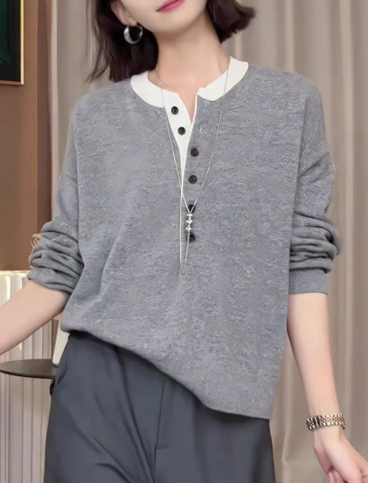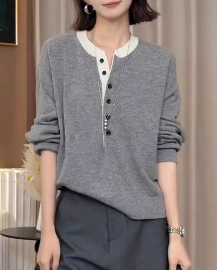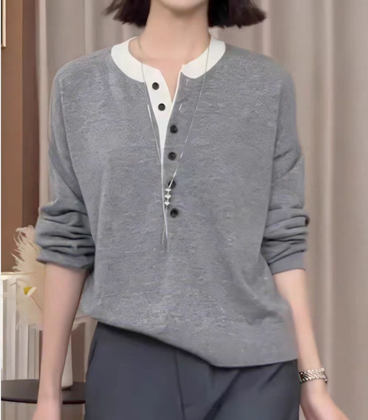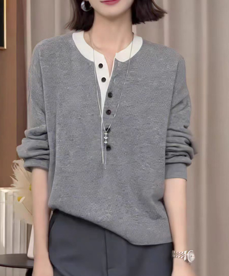 2025秋季新款灰色拼接假两件圆领长袖针织衫女设计感洋气毛织上衣,批发价,价格:39,厂家直销,2025秋季新款灰色拼接假两件圆领长袖针织衫女设计感洋气毛织上衣,免费拿样。