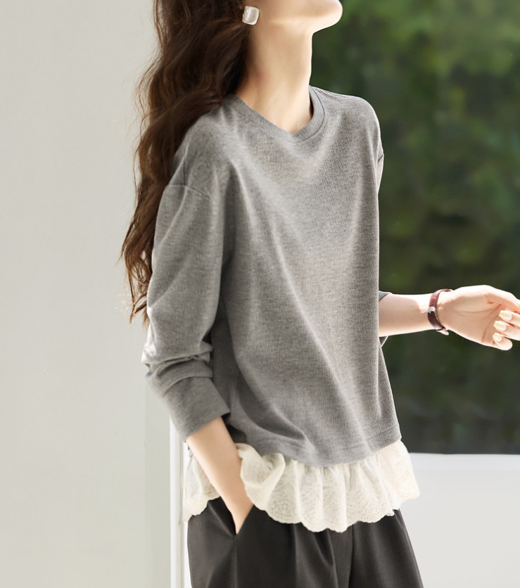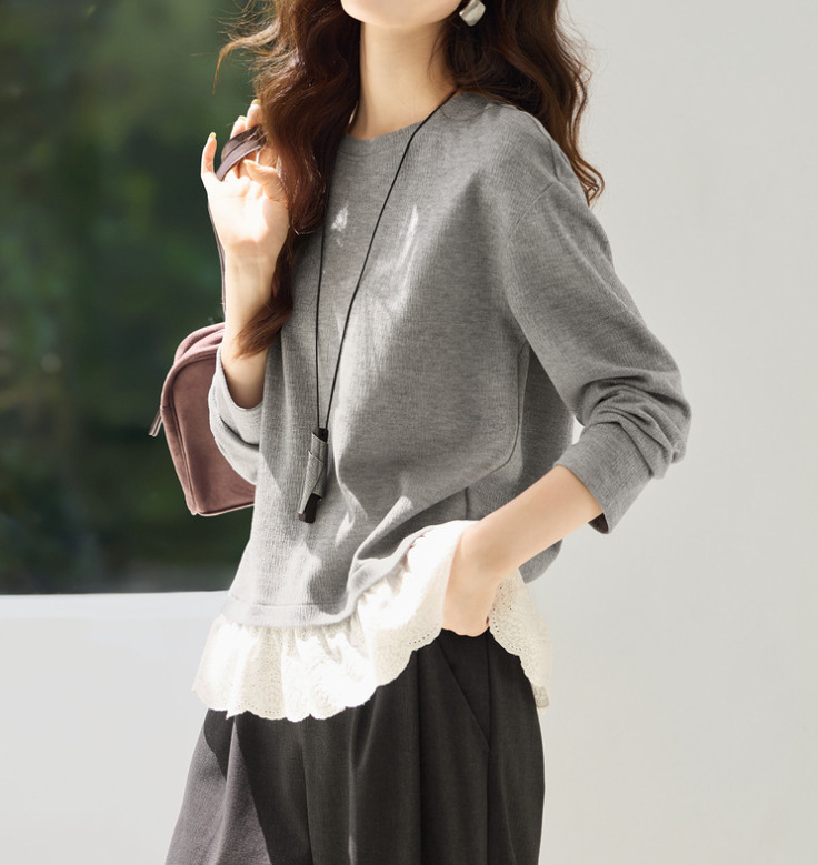 都市慢奏25秋休闲设计感系下摆拼接木耳边慵懒圆领卫衣女