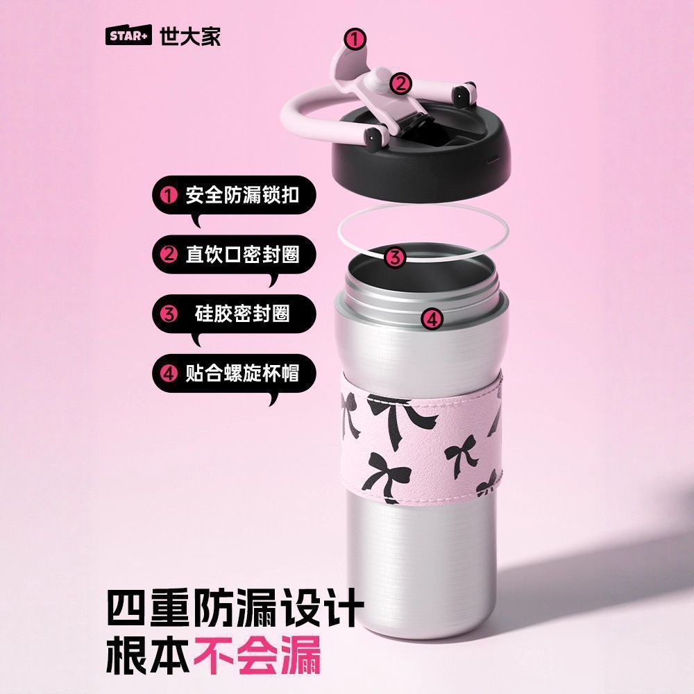 高颜值卡通保温杯304不锈钢大容量便携提绳水杯女生咖啡杯可爱学