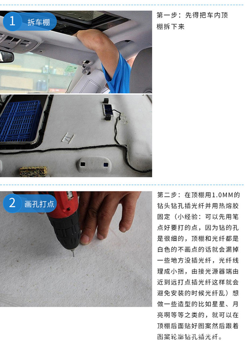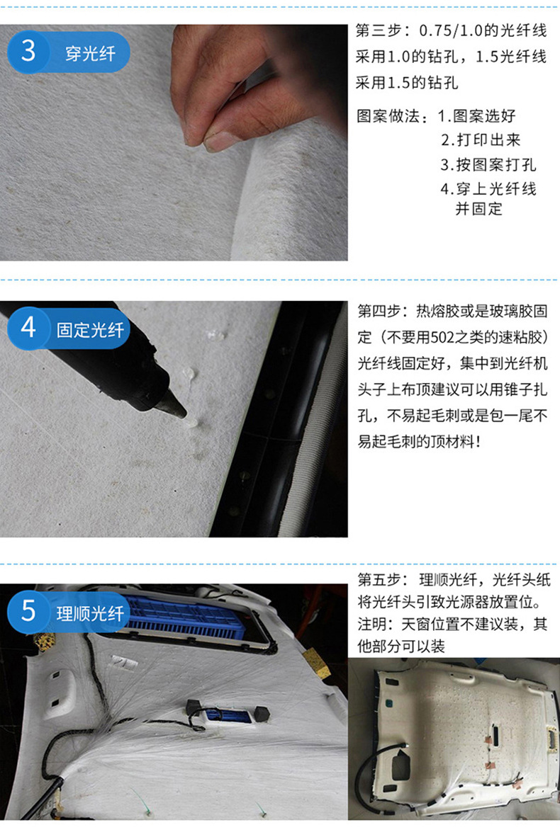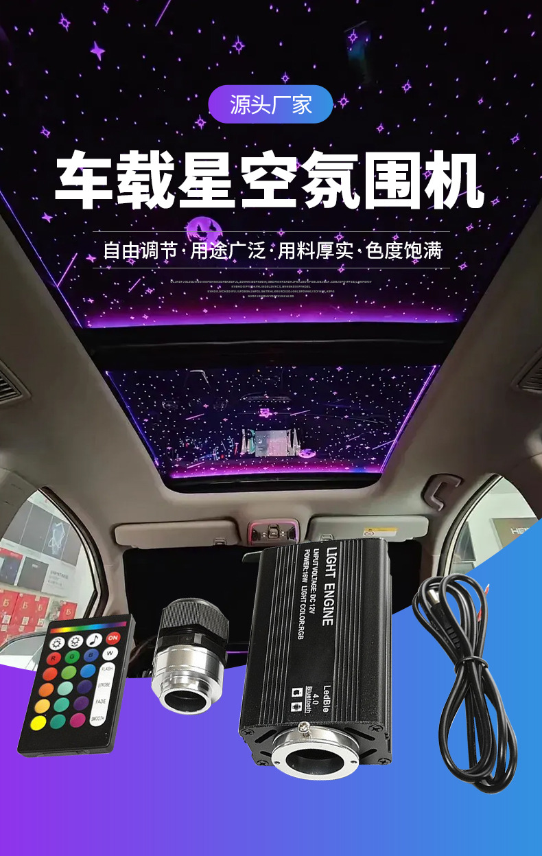led车载星空光纤机单头七彩变色氛围光源器无线遥控光纤灯套装