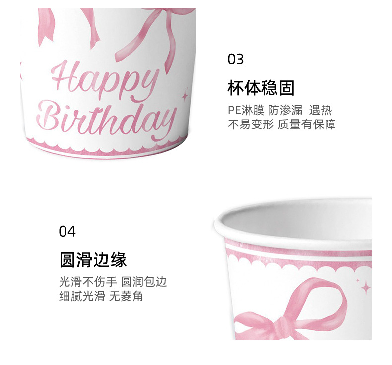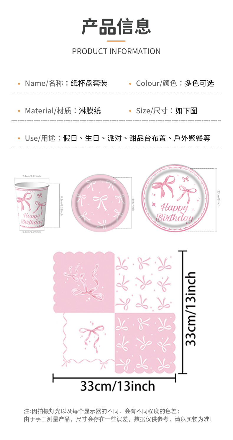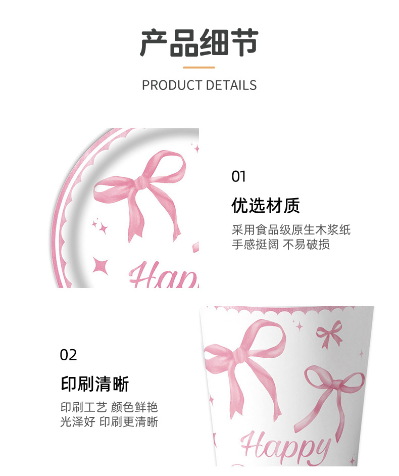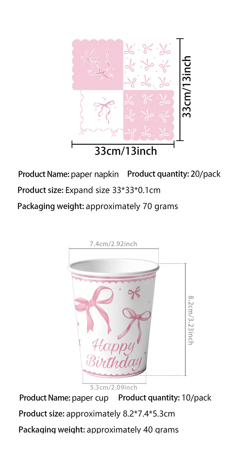 粉色蝴蝶结生日布置一次性纸盘纸杯桌布拉旗横幅气球女孩庆生餐具