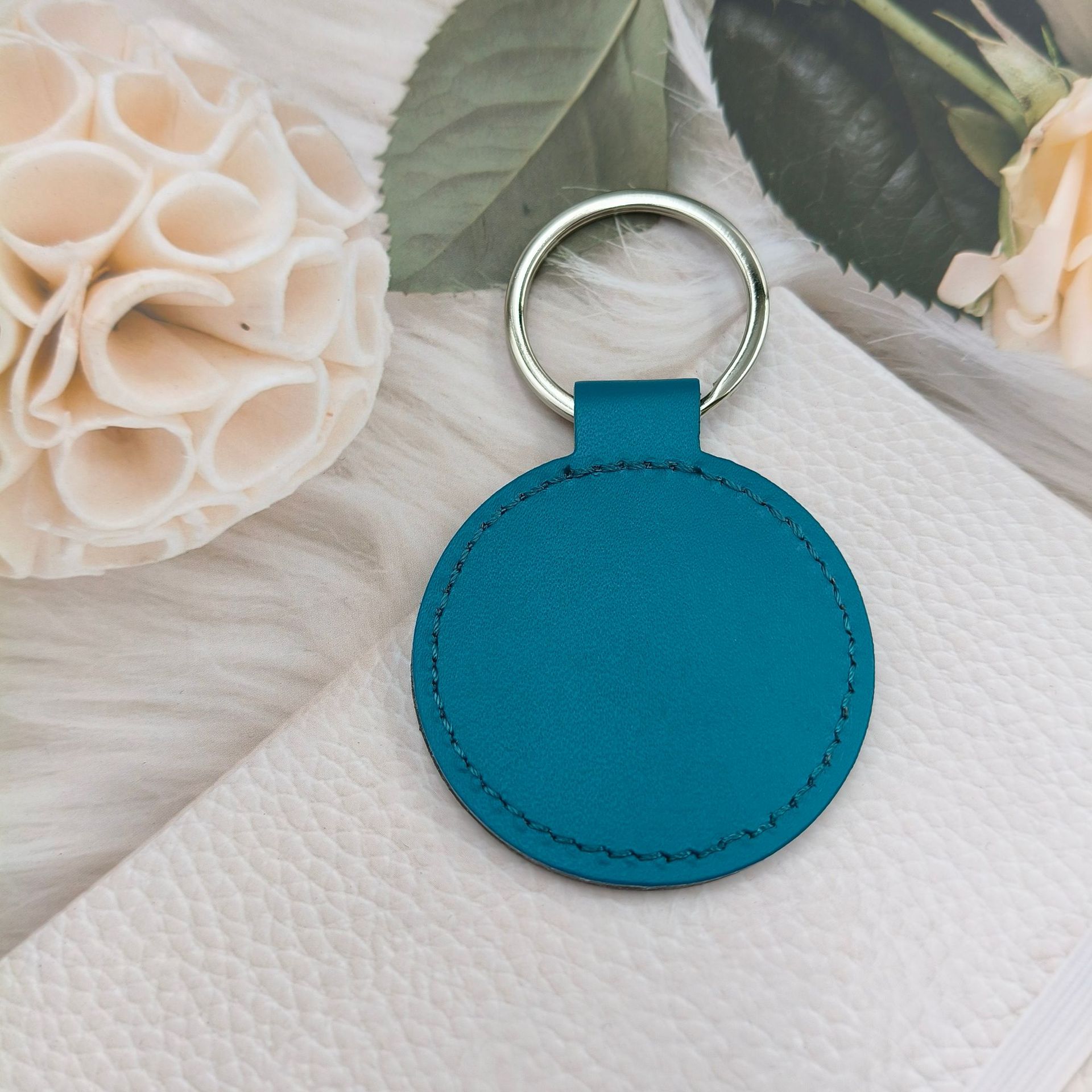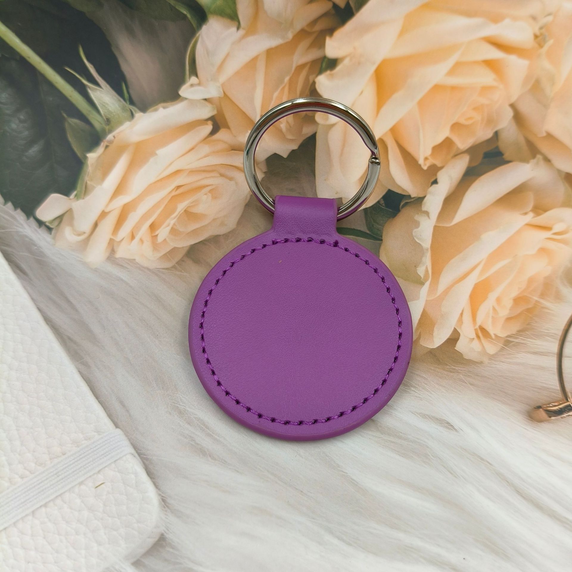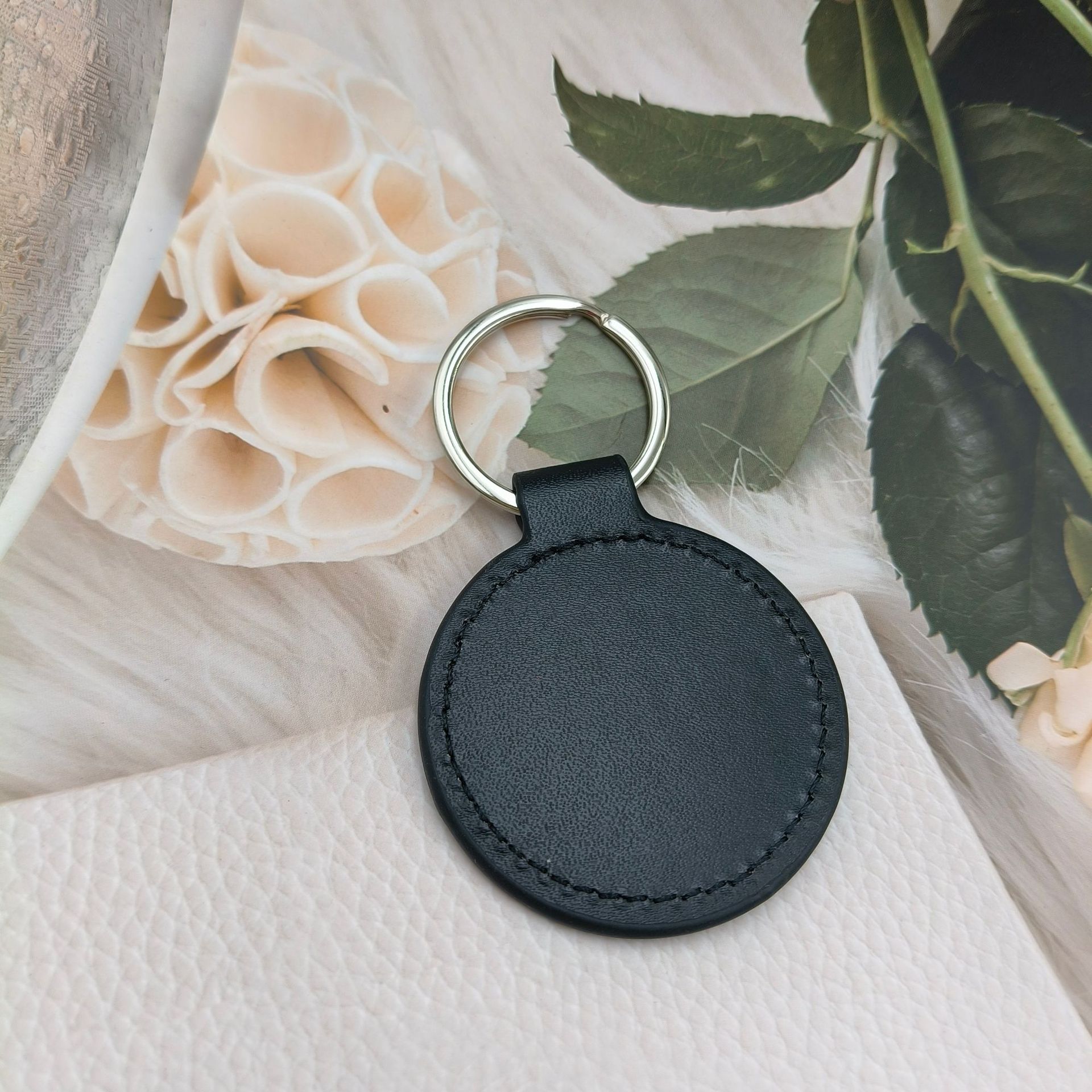 创意PU皮革钥匙扣仿真皮圆形钥匙扣包包挂件汽车钥匙扣压印logo