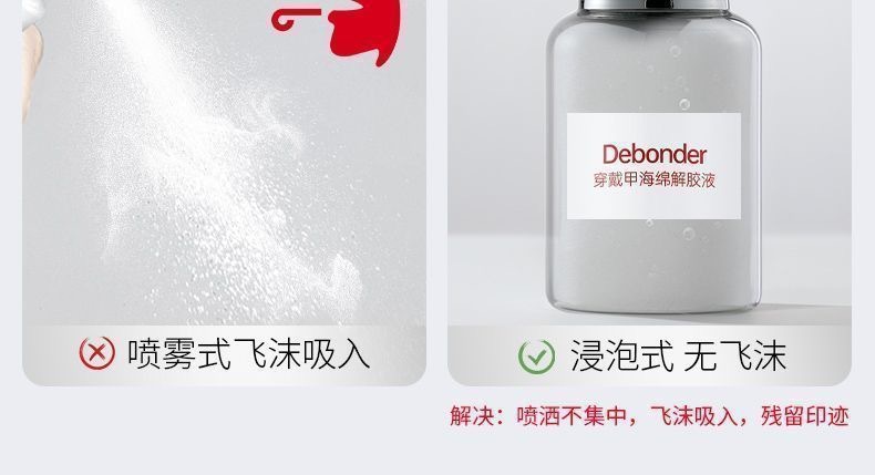 穿戴甲专用海绵卸甲液美甲贴片解胶剂不伤手指浸泡快速洗甲卸甲液