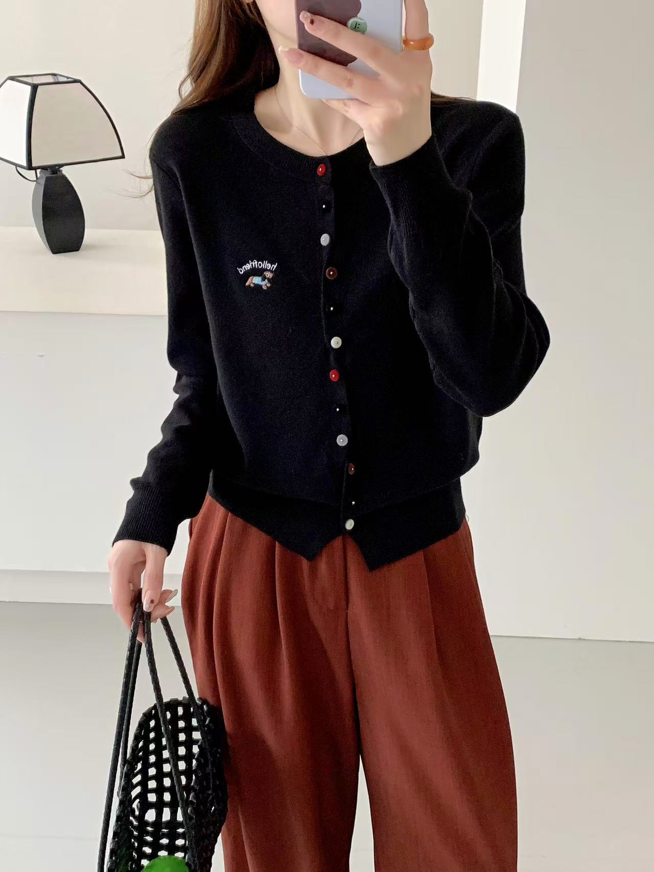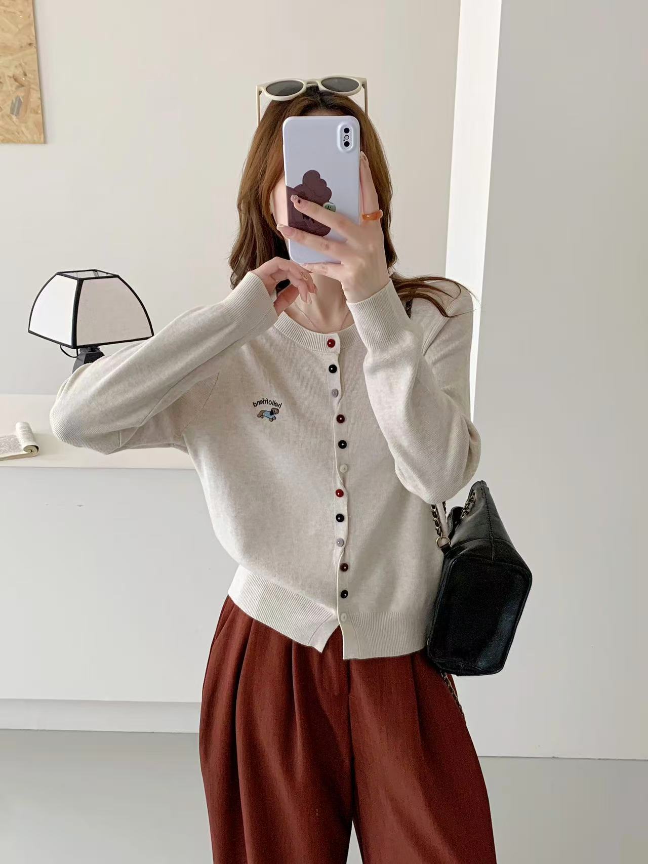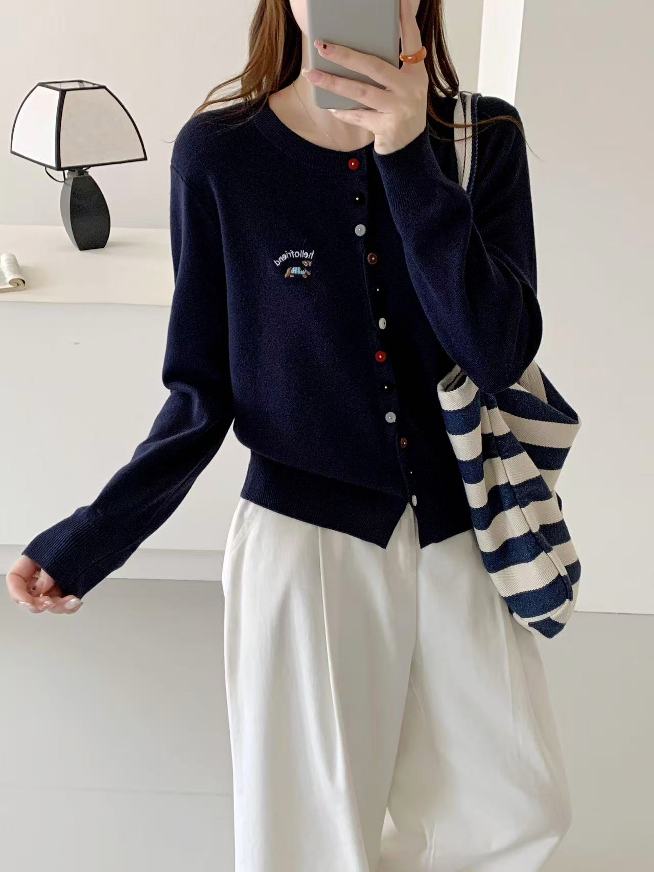 针织衫外套女2025年秋季新款时尚彩色纽扣刺绣开衫圆领设计感
