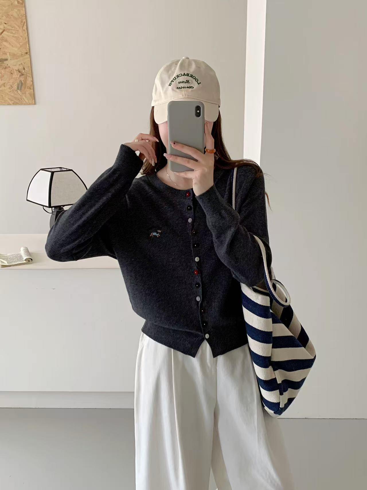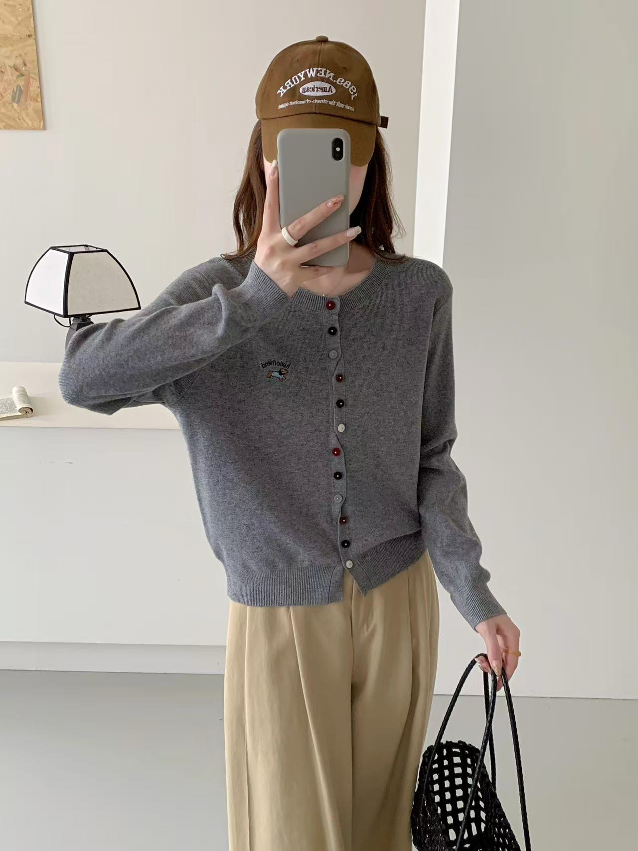 针织衫外套女2025年秋季新款时尚彩色纽扣刺绣开衫圆领设计感,批发价,价格:59,厂家直销,针织衫外套女2025年秋季新款时尚彩色纽扣刺绣开衫圆领设计感,免费拿样。