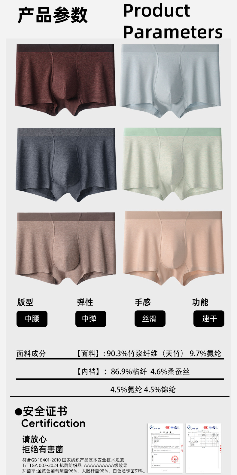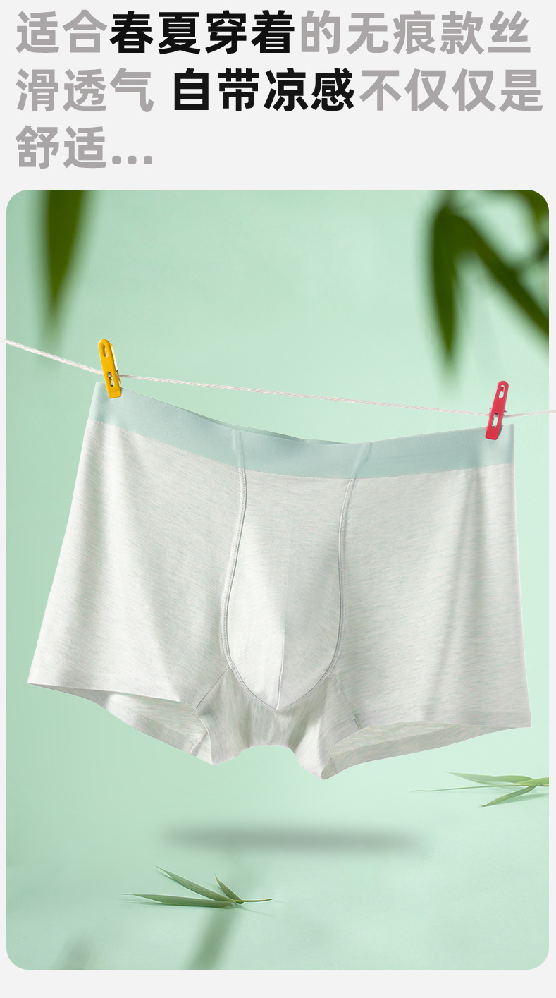 10A类抗菌竹纤维男士内裤桑蚕丝养护抑菌裆透气大码无痕平角四角