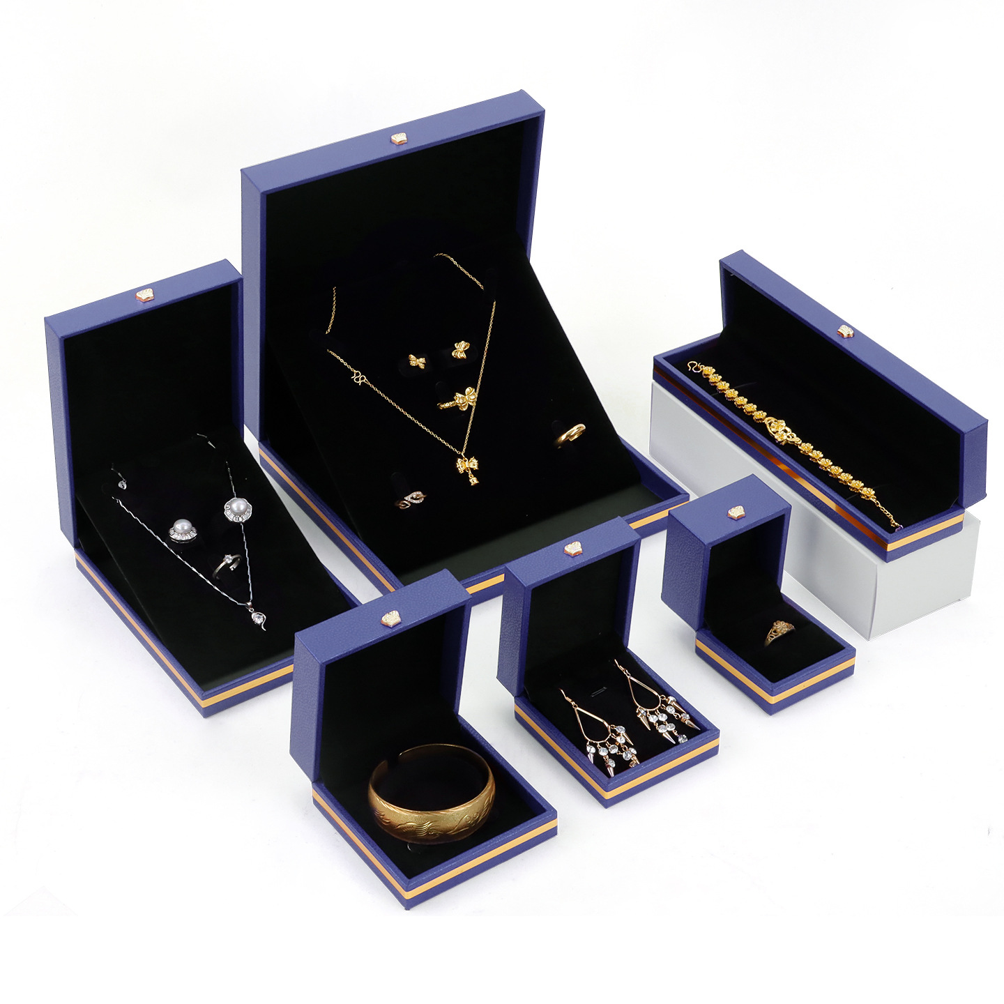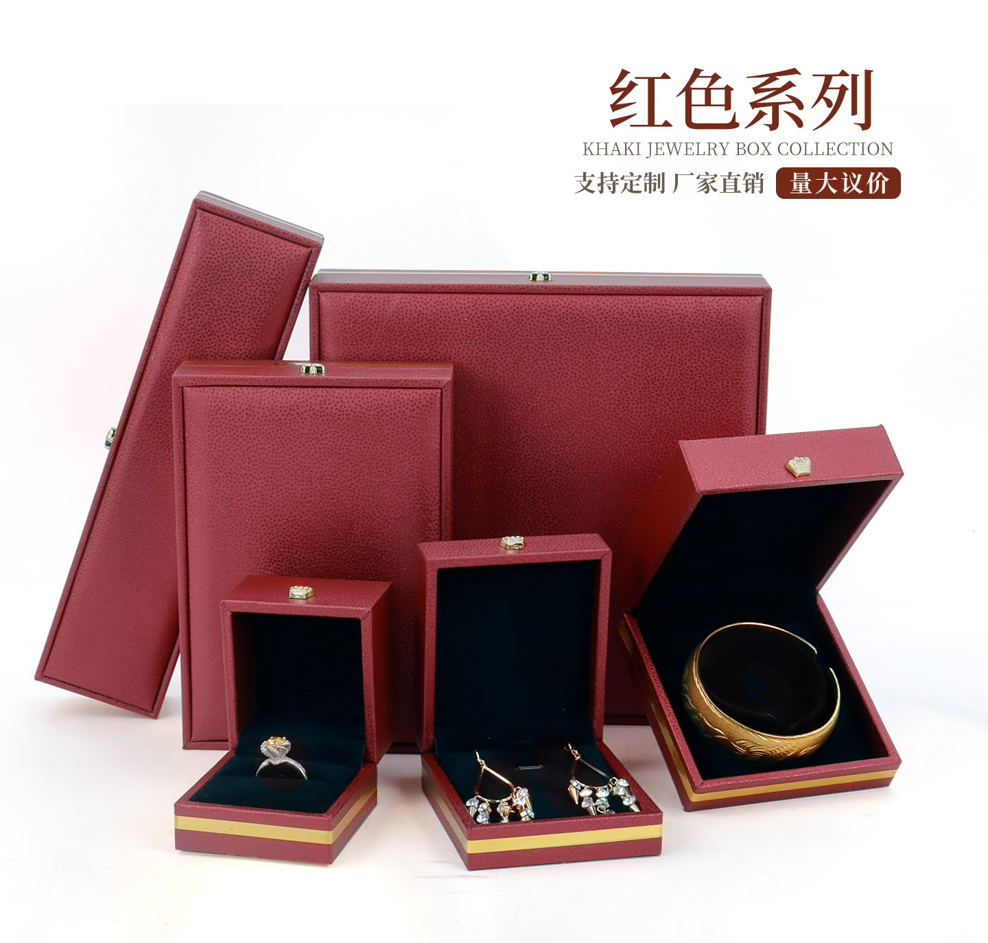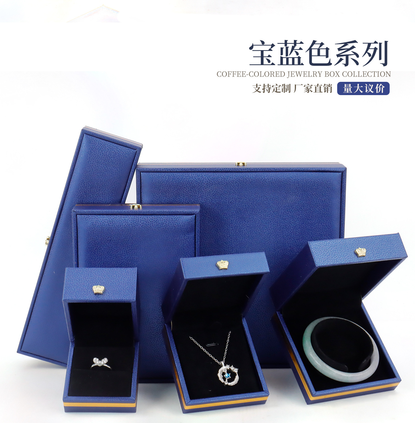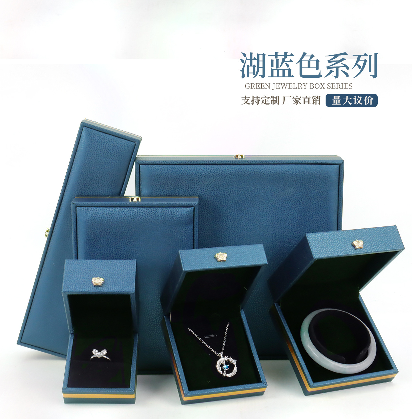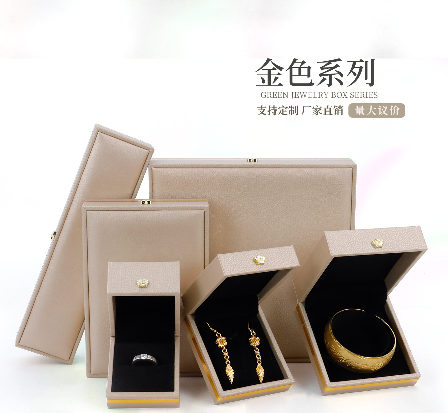 厂家直发PU皮皇冠珠宝盒直角金边首饰盒求婚戒指吊坠手镯饰品礼盒