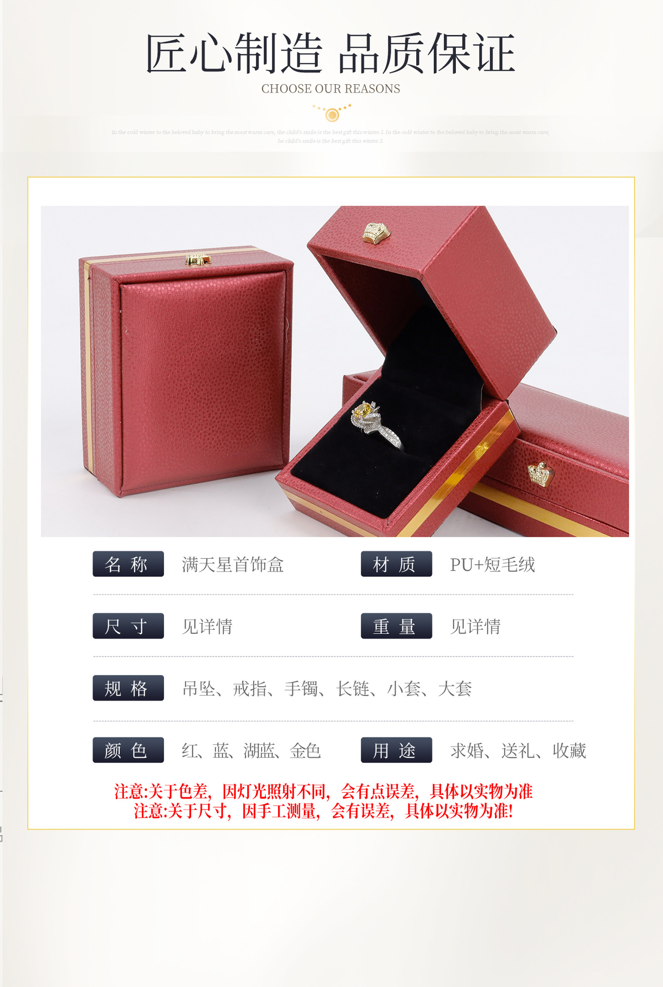 推荐理由:高档时尚珠宝包装礼盒,戒指吊坠手镯求婚订婚礼盒