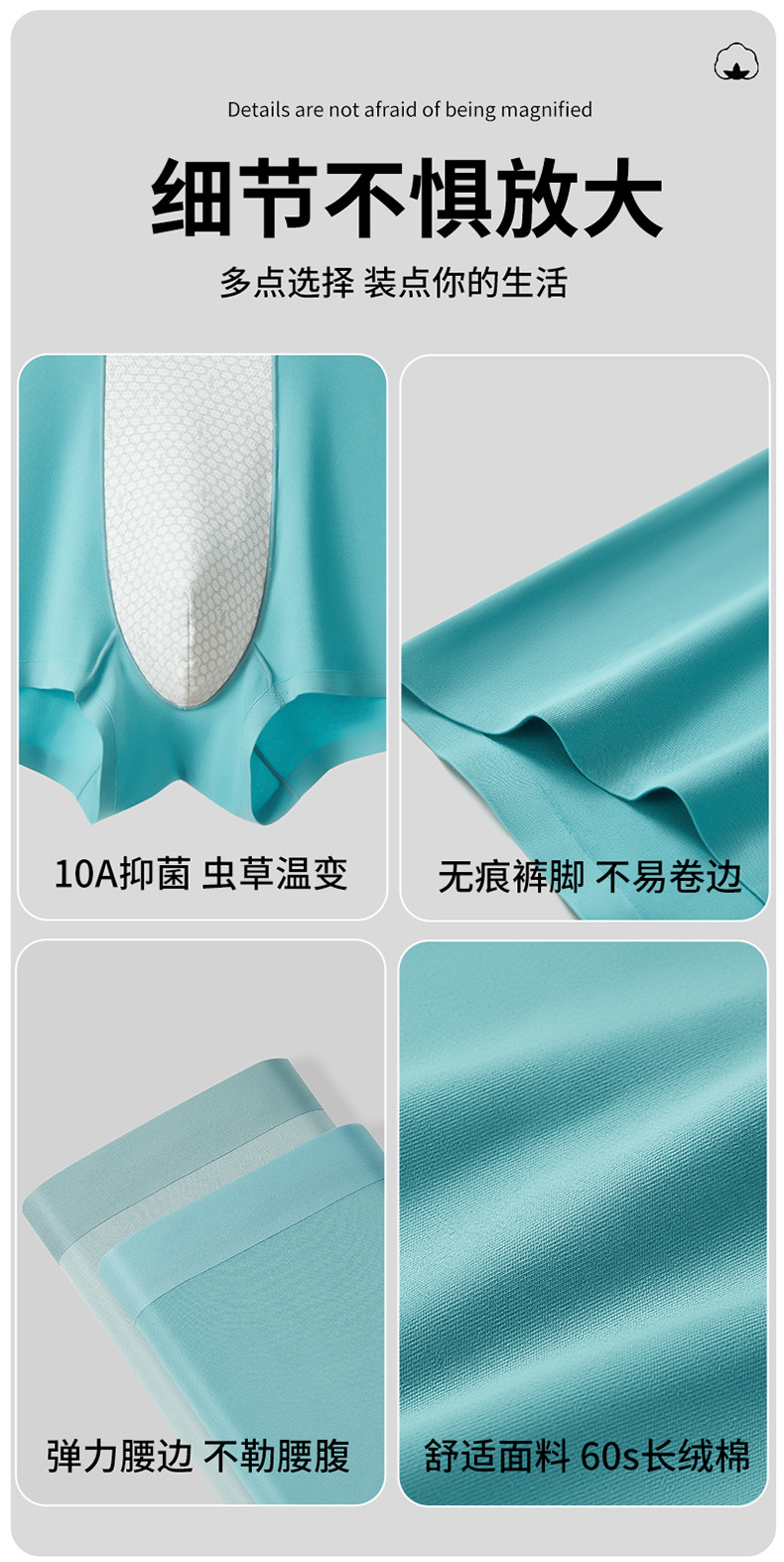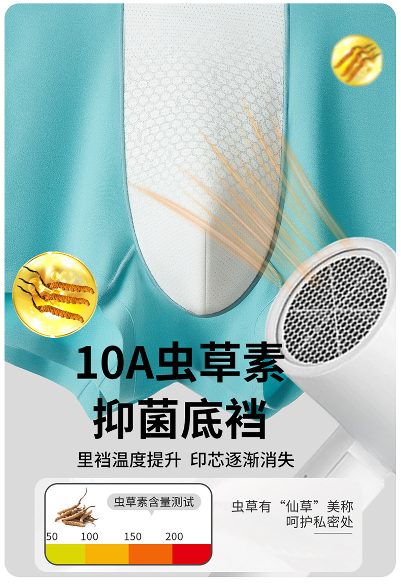 新款60S长绒棉男士内裤无痕透气舒适10A抑菌【虫草养护裤】盒装