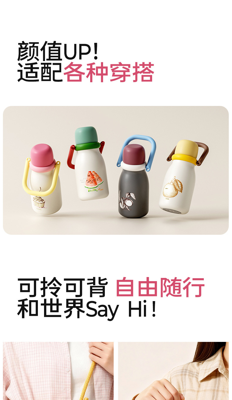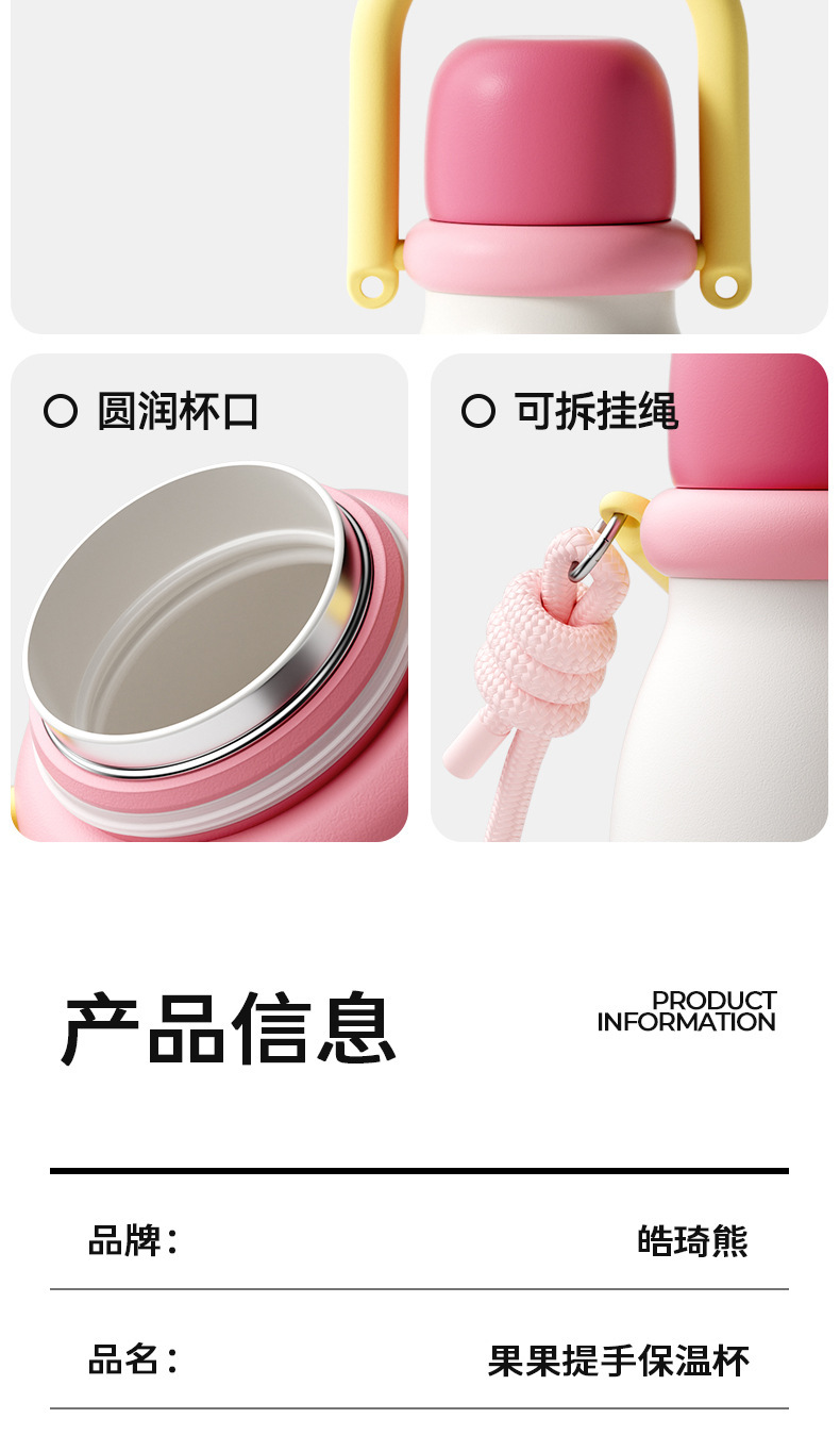 新款果果提手保温杯可爱带挂绳便携三饮吸管杯水果图案保温保冷杯22.5RMB立即购买>