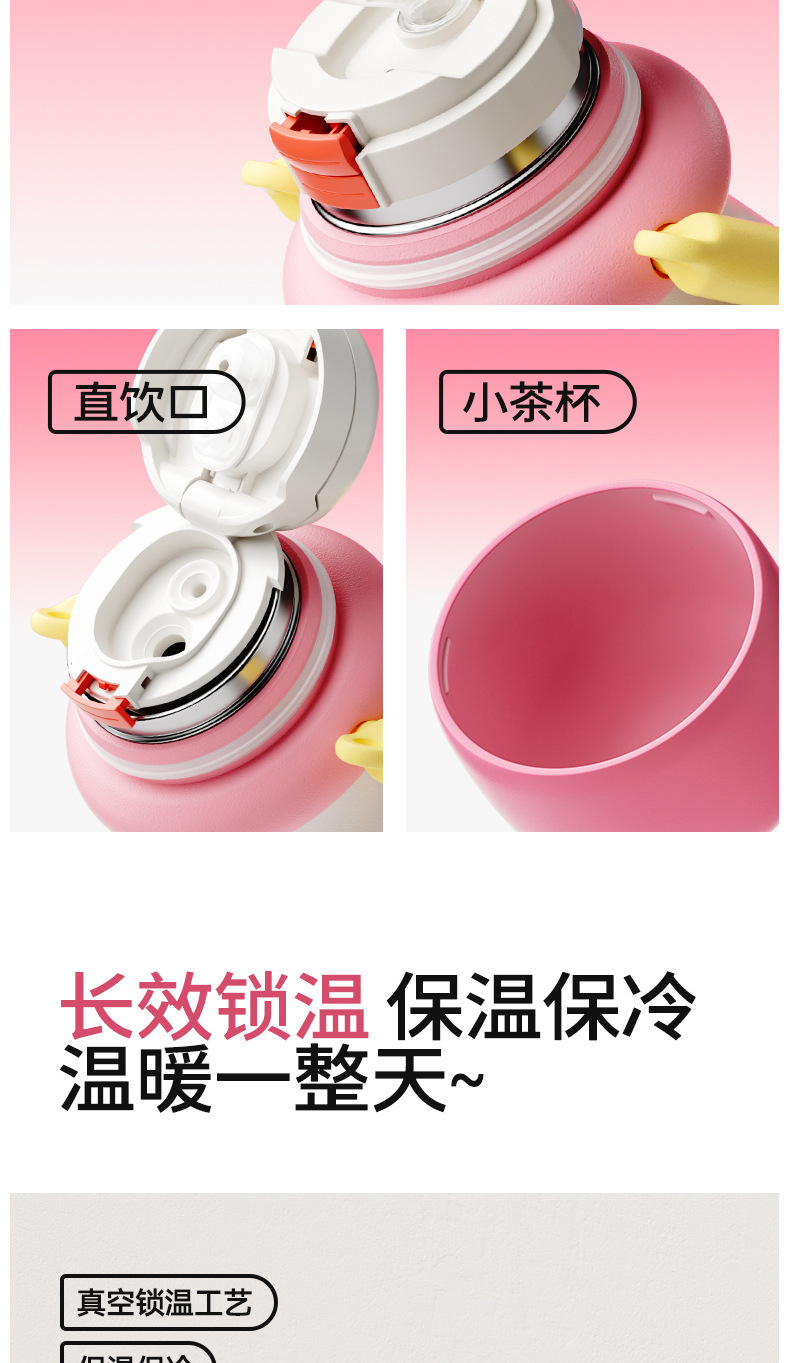 新款果果提手保温杯可爱带挂绳便携三饮吸管杯水果图案保温保冷杯
