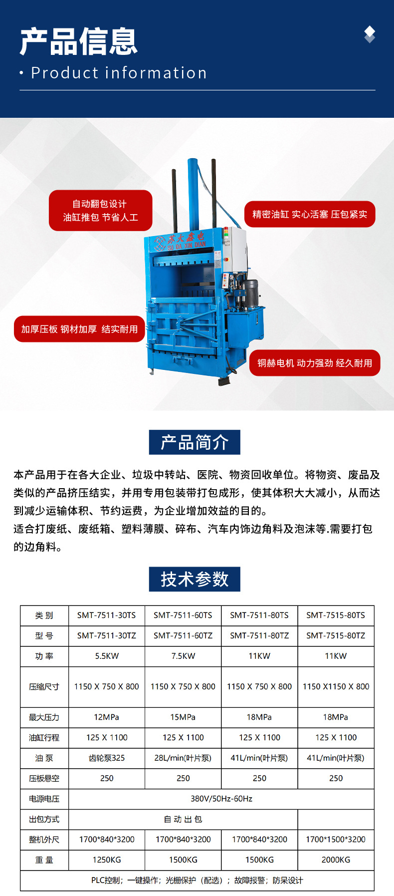 液压压缩打包机编织袋稻草编制塑料易拉罐金属铜铝合金压缩打包机