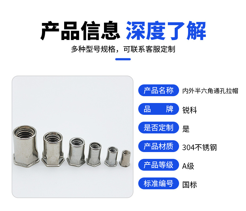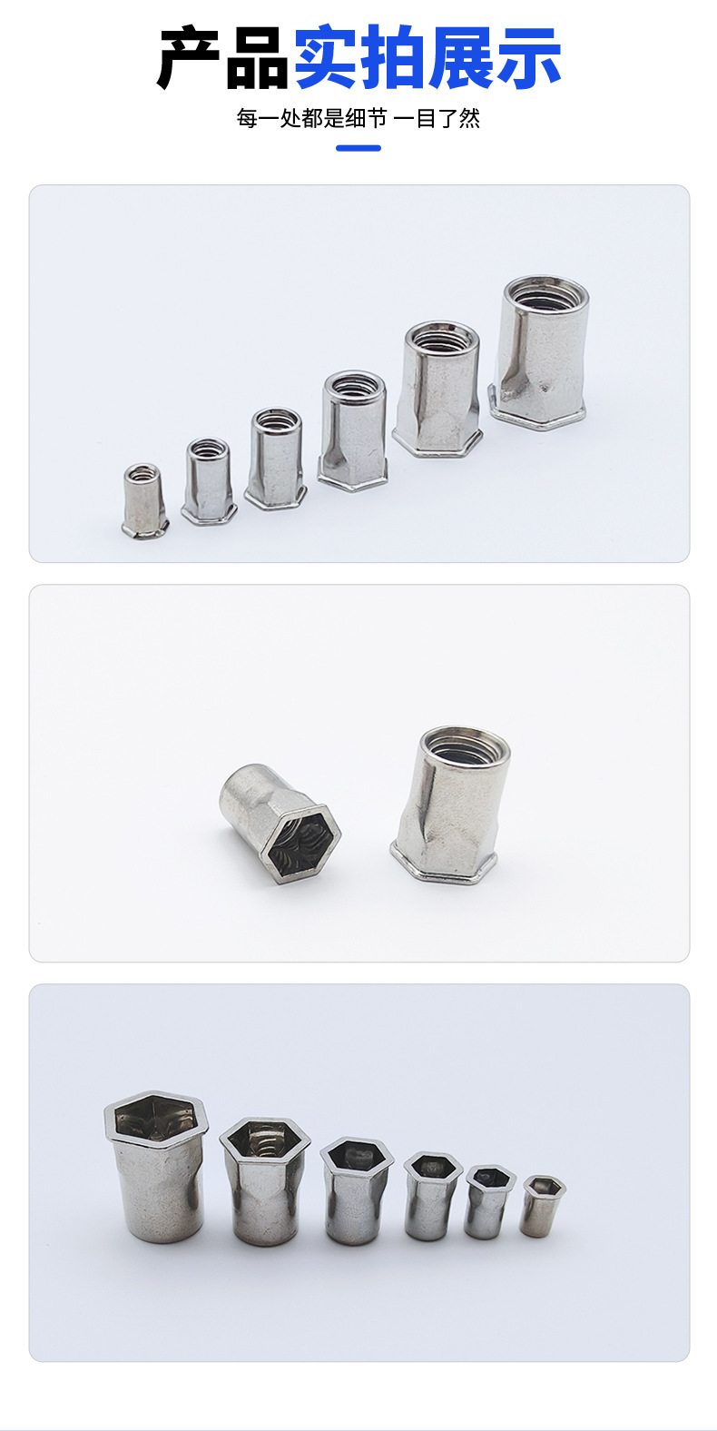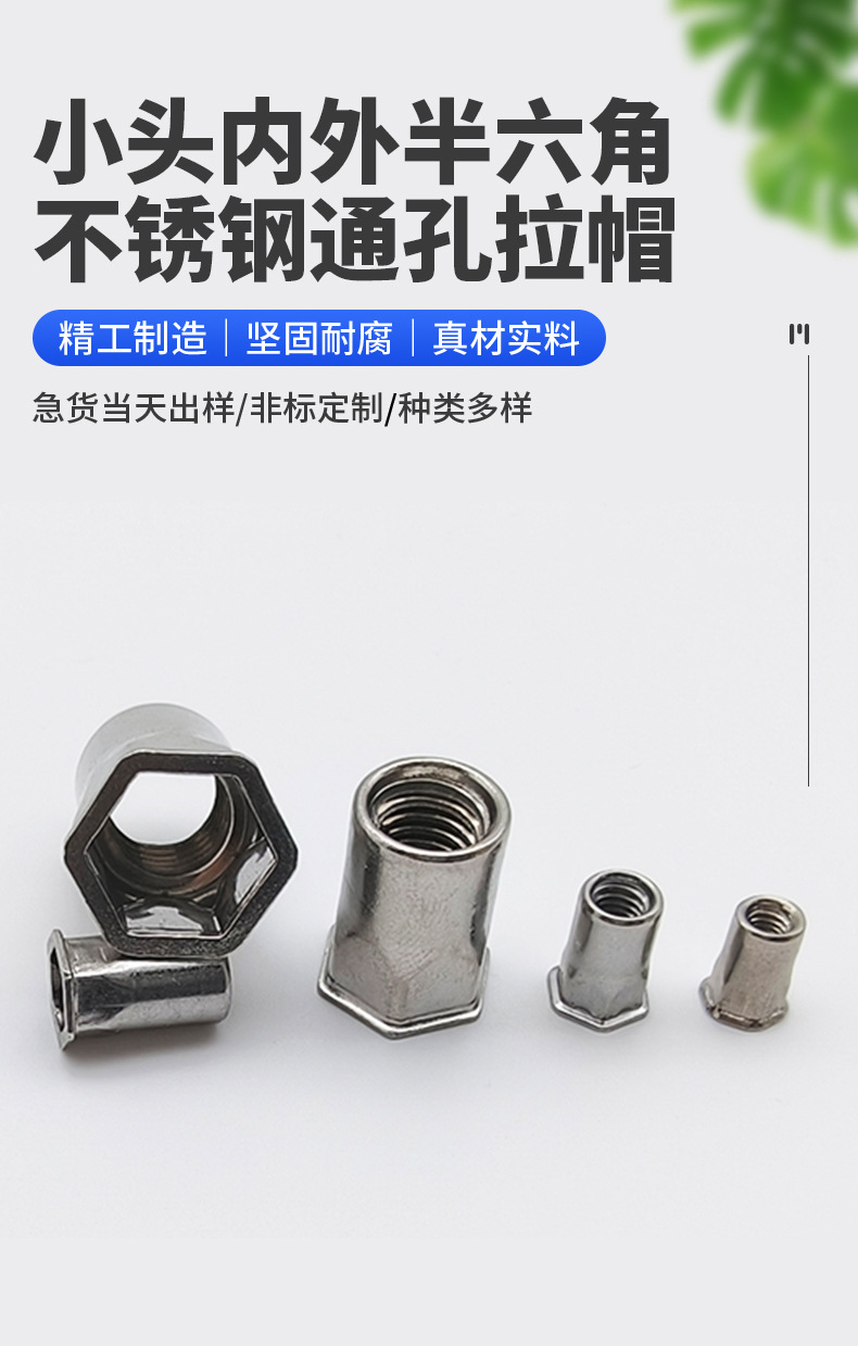 304不锈钢拉铆螺母五金配件小头内外半六角不锈钢通孔拉帽规格全