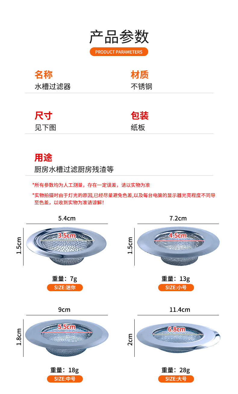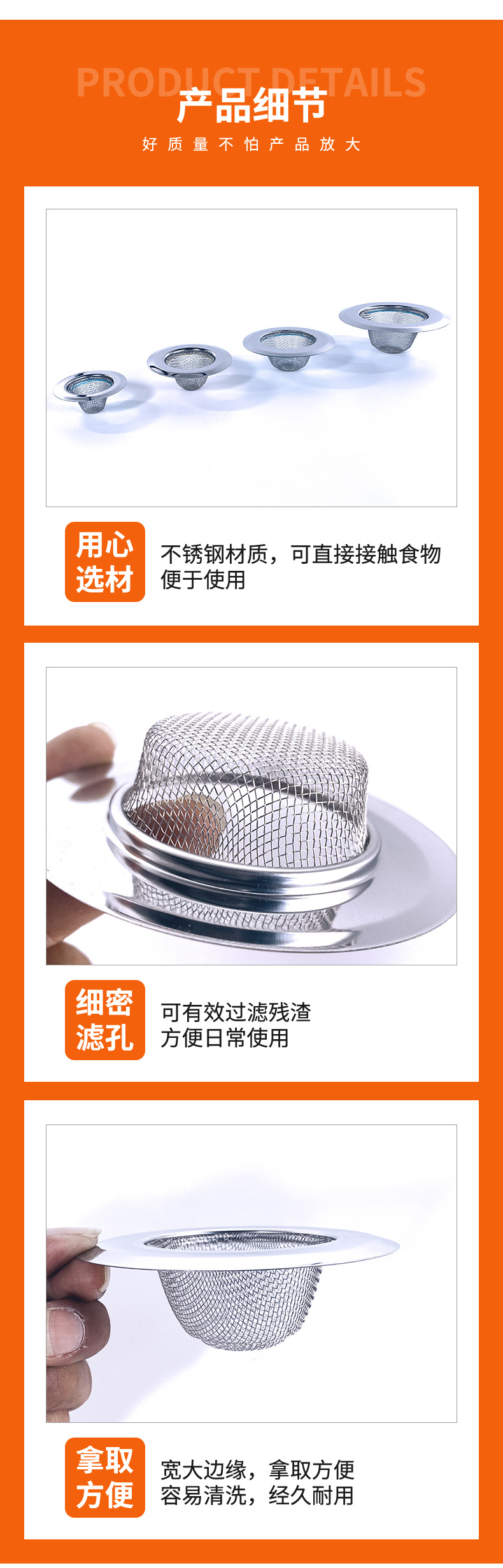 水槽过滤网厨房用品不锈钢金属隔渣漏斗工具下水道排水口防塞地漏