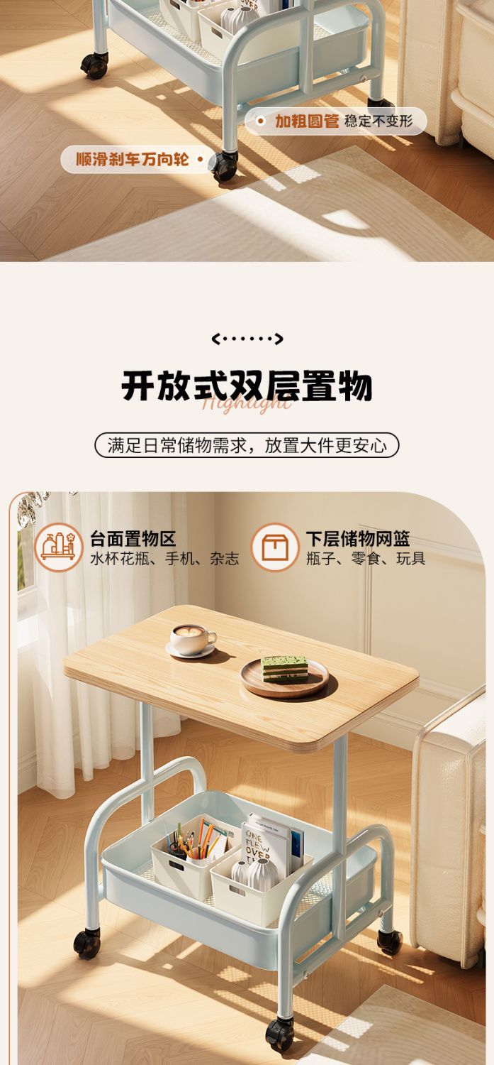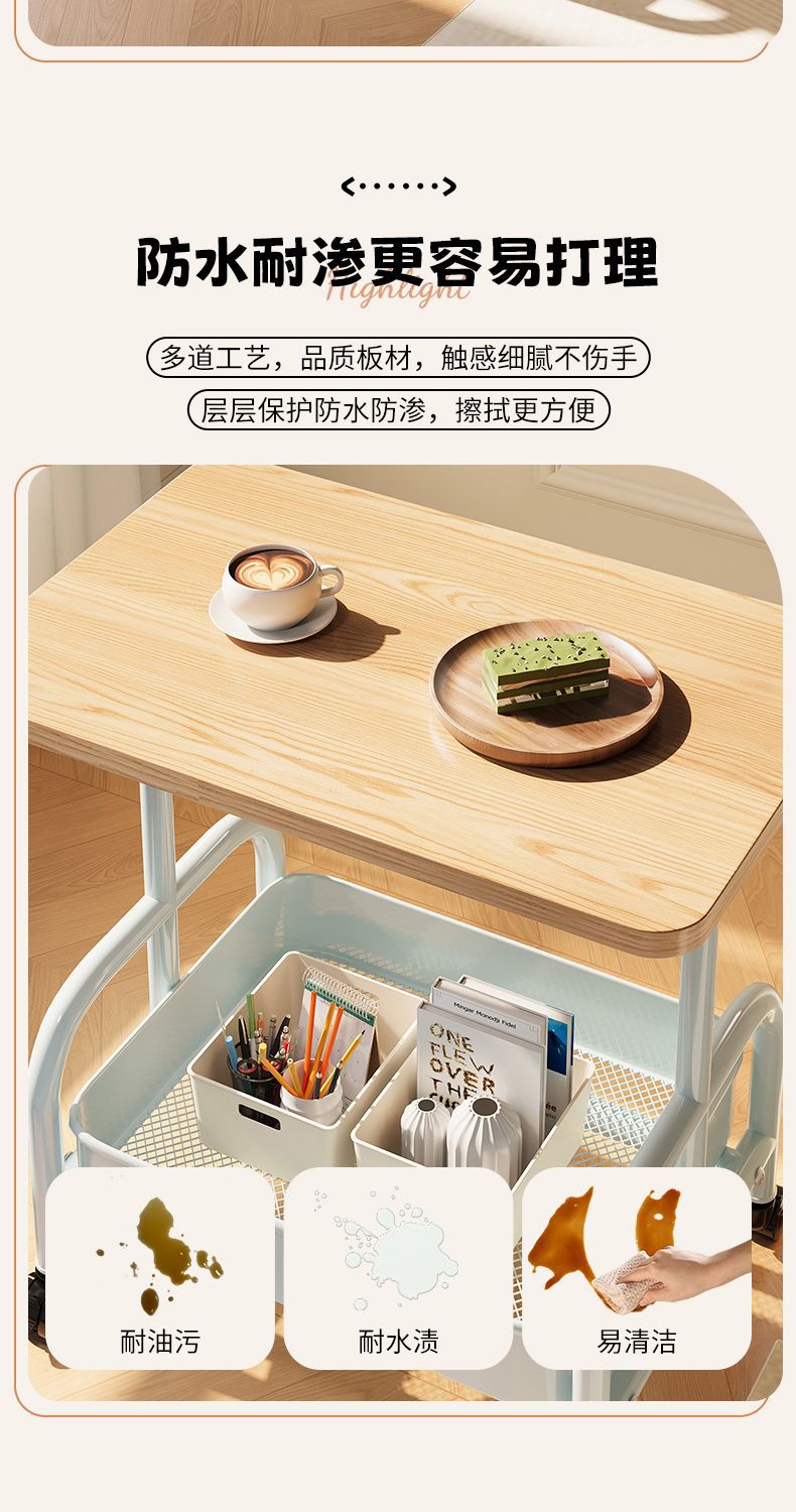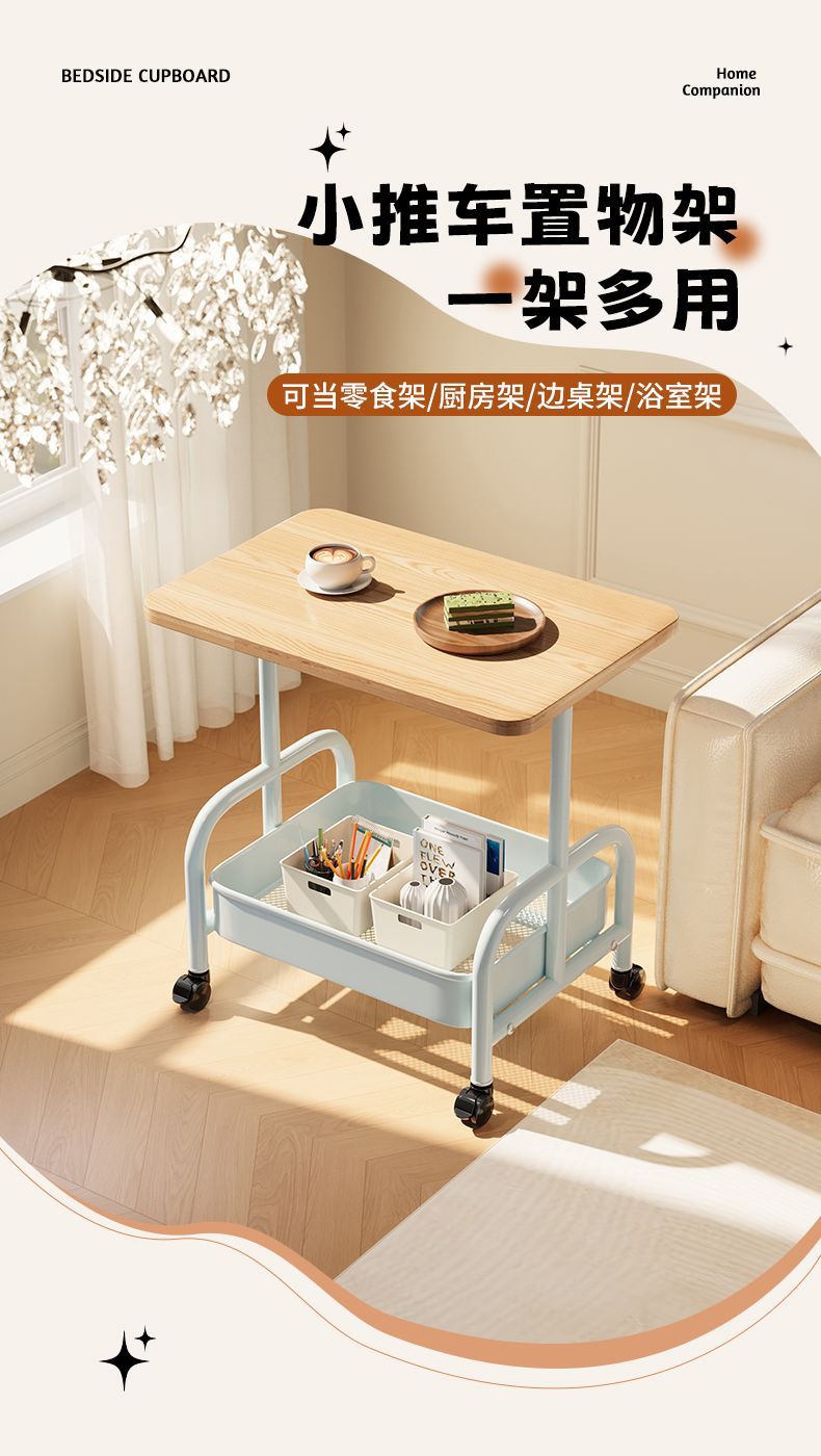 可移动小推车沙发边几储物架简易餐桌台复古床头柜家居收纳置物架
