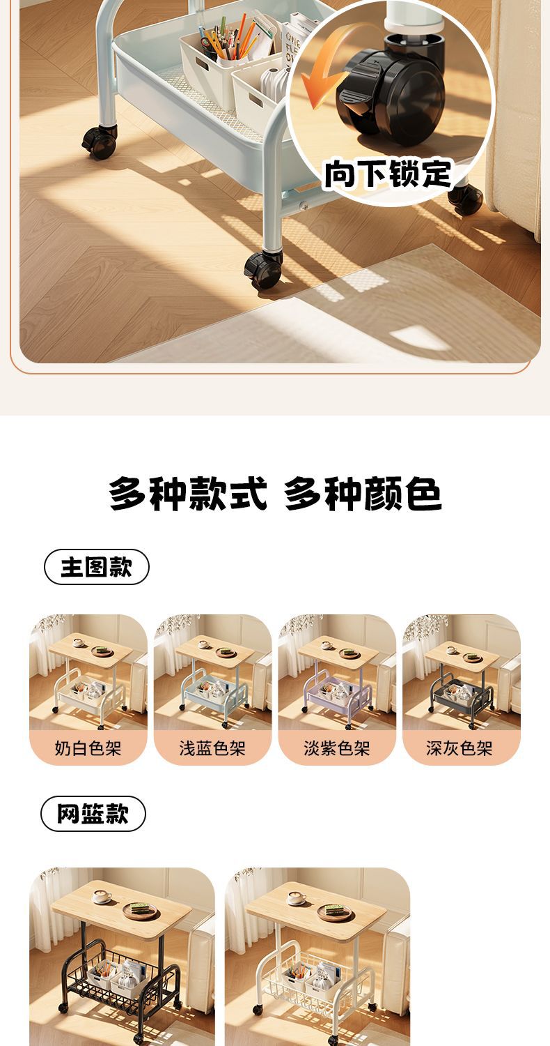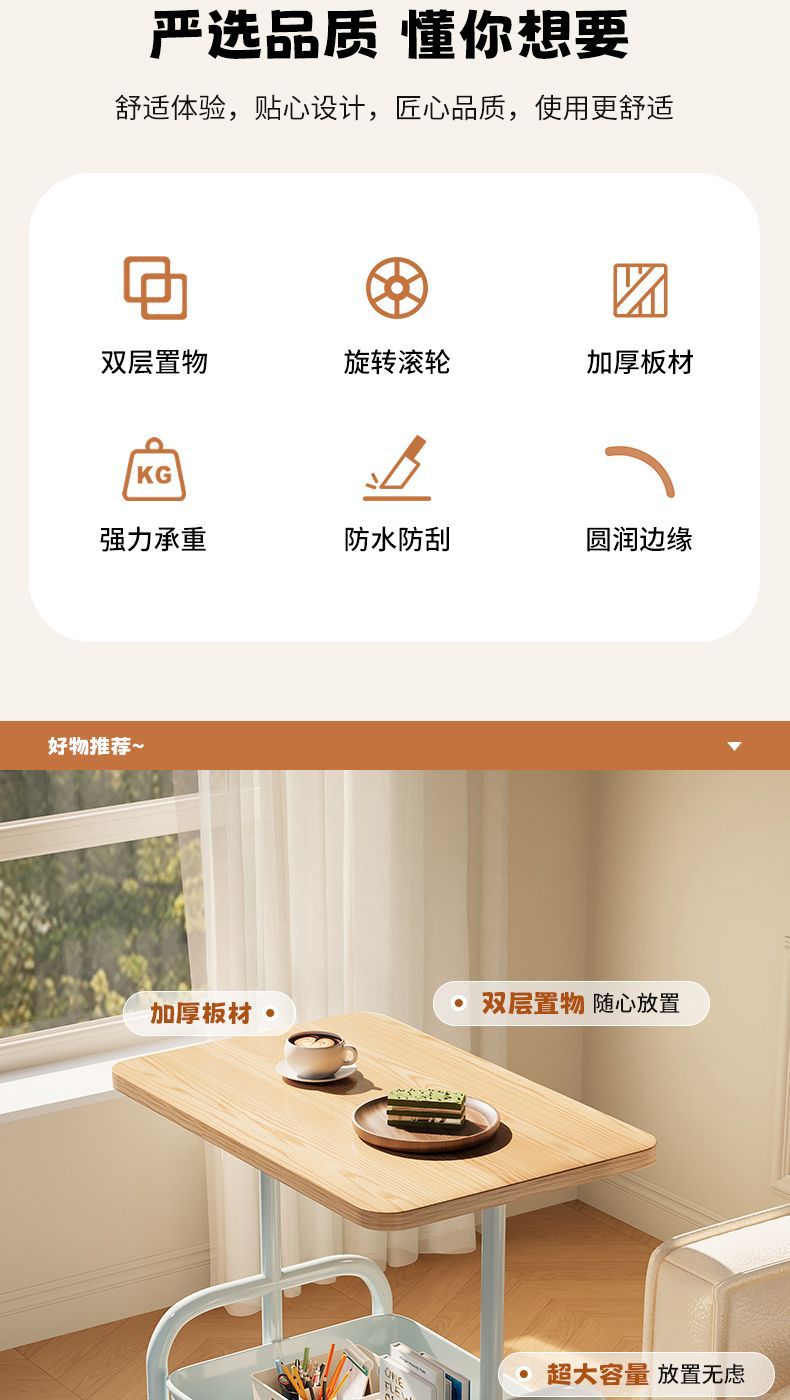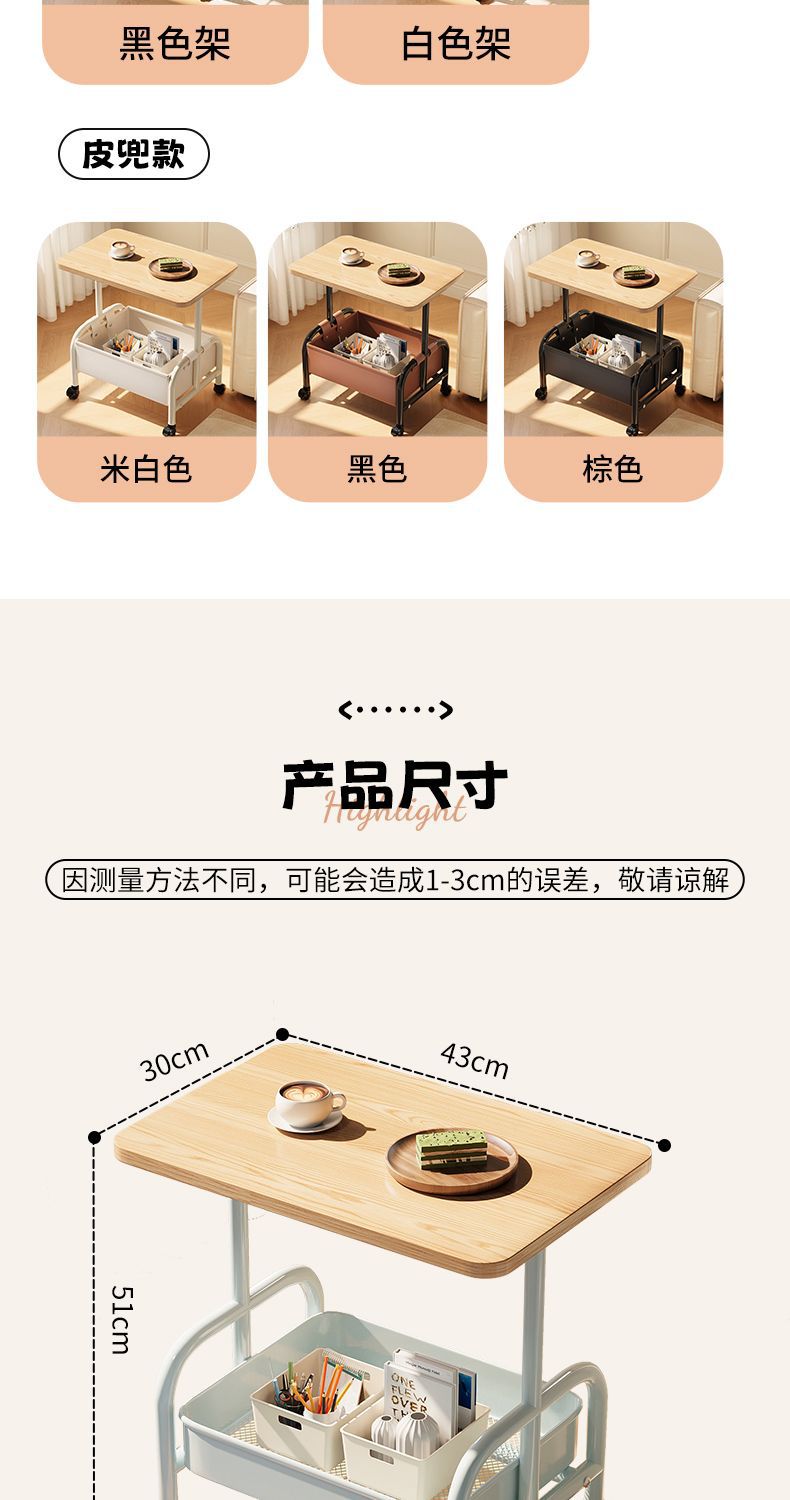 可移动小推车沙发边几储物架简易餐桌台复古床头柜家居收纳置物架