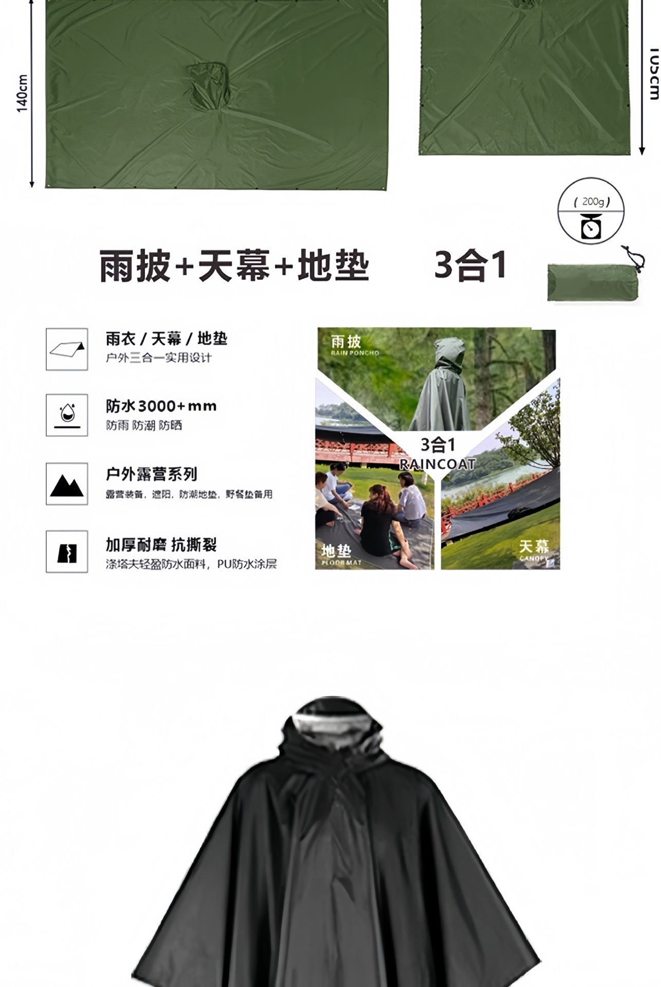 外贸款户外天幕三合一斗篷雨衣登山徒步露营旅游防暴雨多功能雨披,批发价,价格:16.5,厂家直销,外贸款户外天幕三合一斗篷雨衣登山徒步露营旅游防暴雨多功能雨披,免费拿样。
