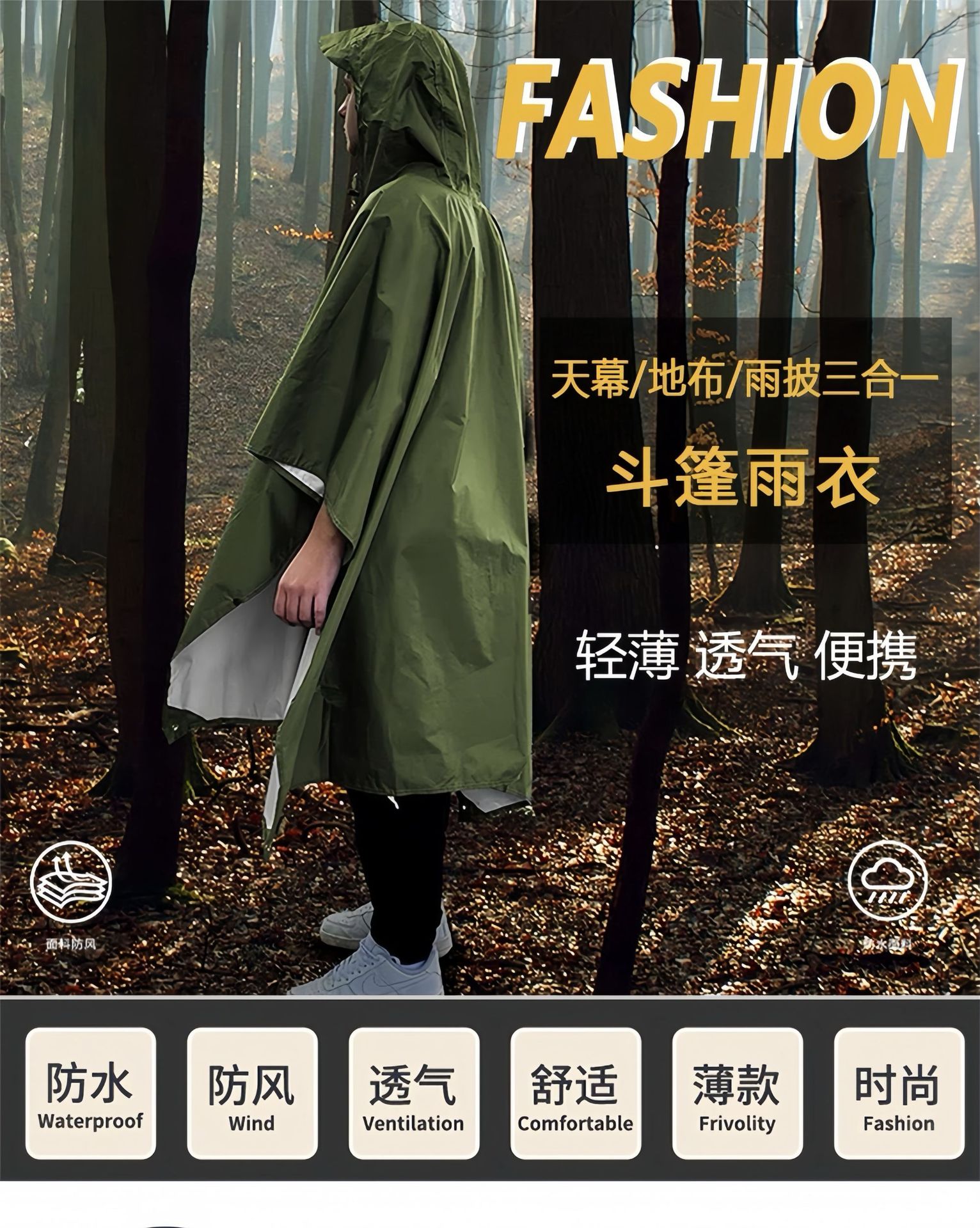 外贸款户外天幕三合一斗篷雨衣登山徒步露营旅游防暴雨多功能雨披