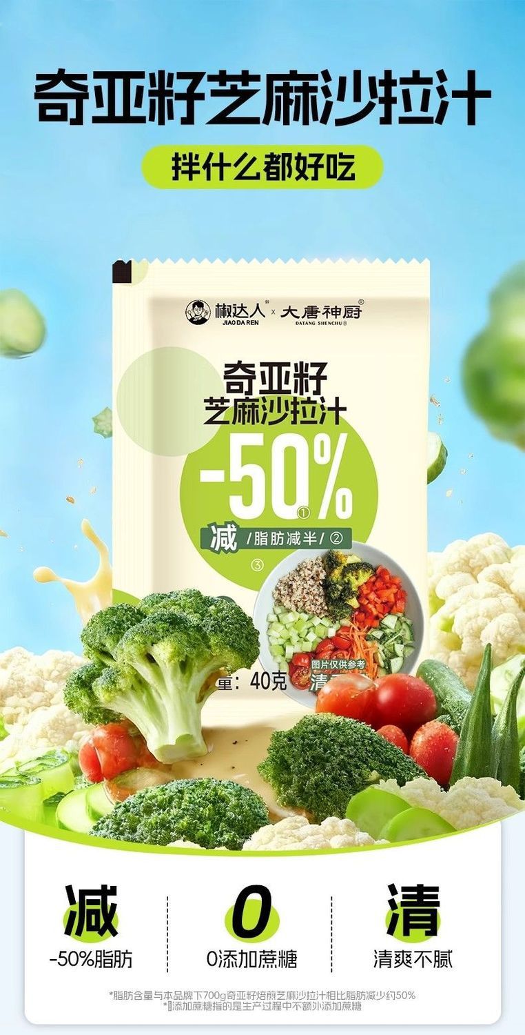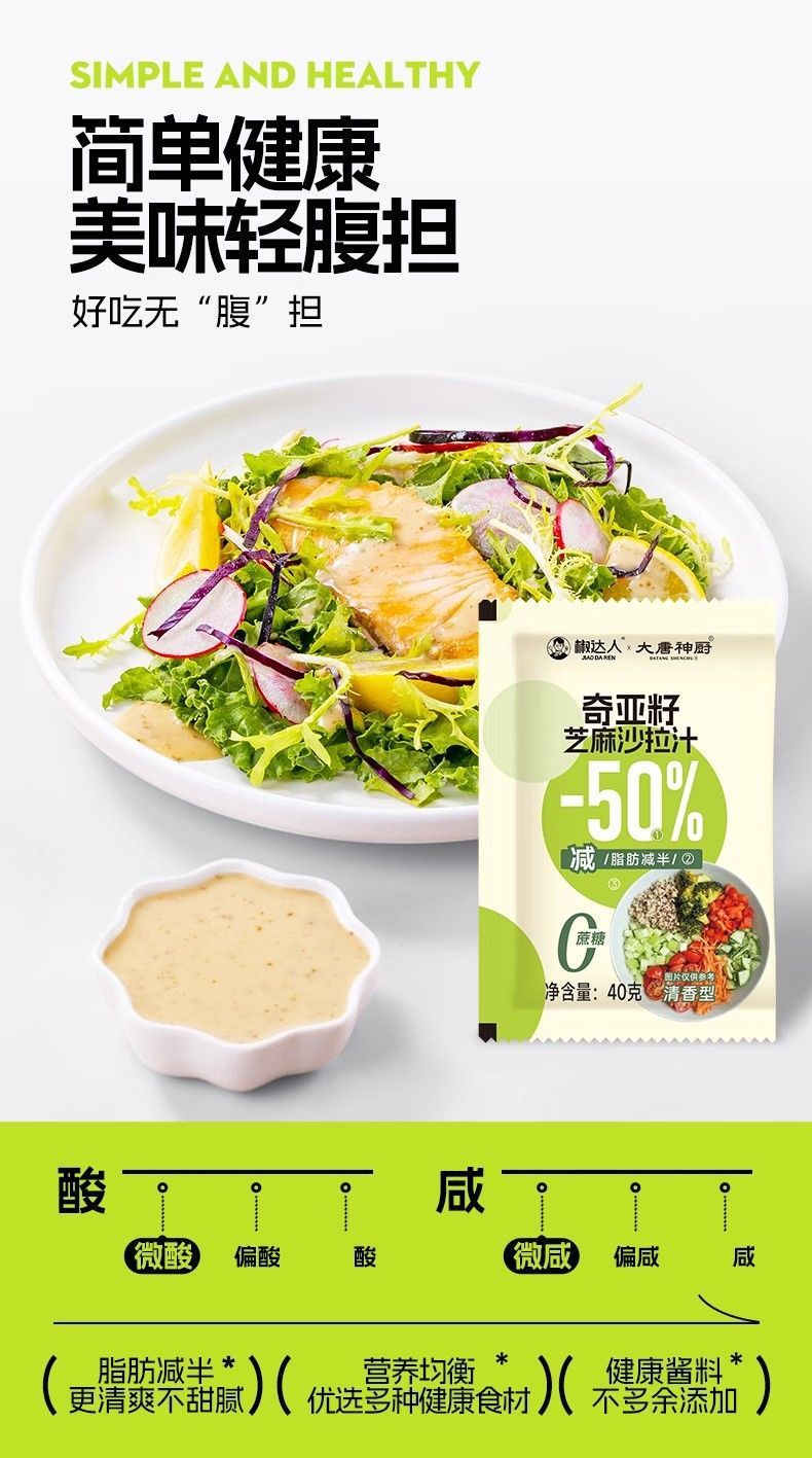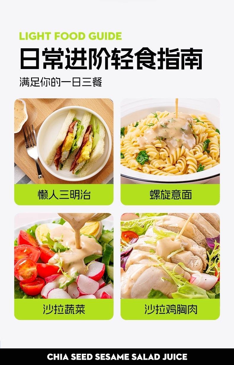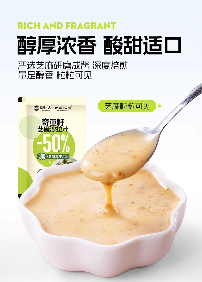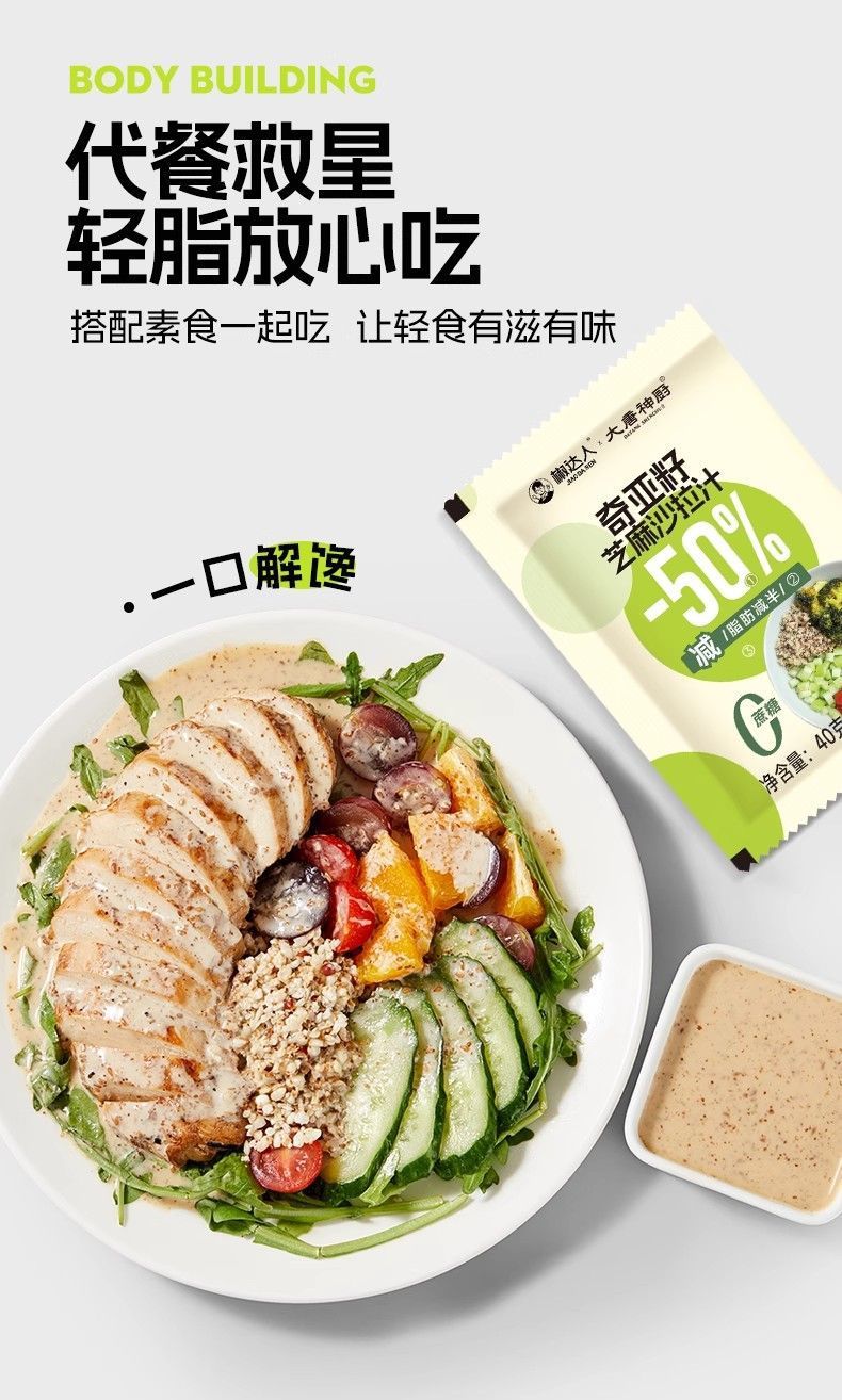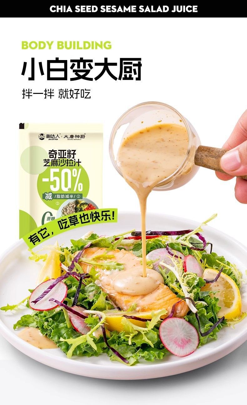 奇亚籽芝麻沙拉汁沙拉酱油醋汁小包装40g蔬菜水果专用非低脂袋装,批发价,价格:43.8,厂家直销,奇亚籽芝麻沙拉汁沙拉酱油醋汁小包装40g蔬菜水果专用非低脂袋装,免费拿样。