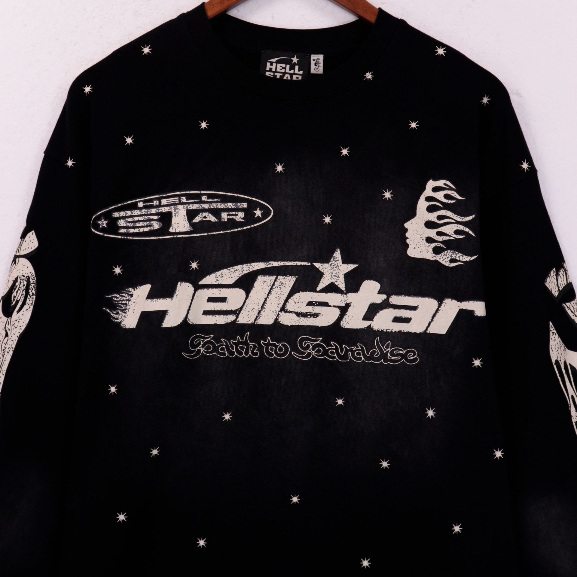 hellstar长袖T恤跨境美式复古潮牌高街地狱之星宽松休闲打底男女
