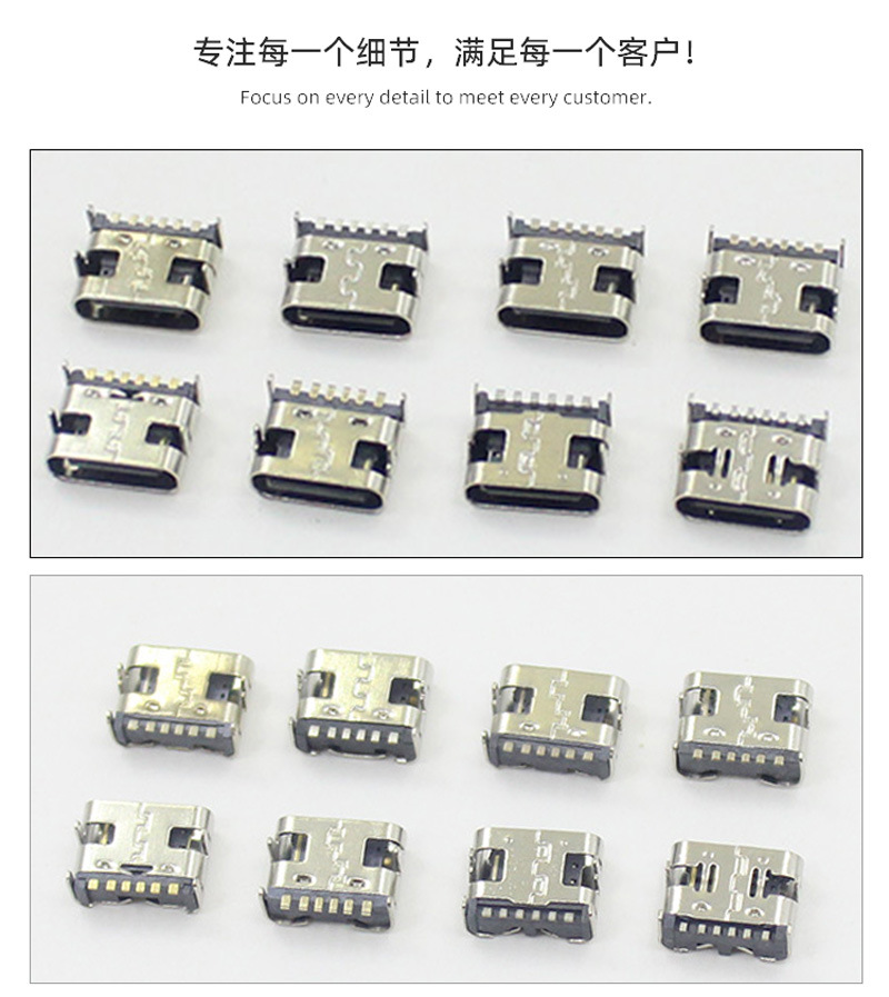 TYPE-C母座6P板上四脚插板全贴后两脚露舌电源插座USB3.1连接器