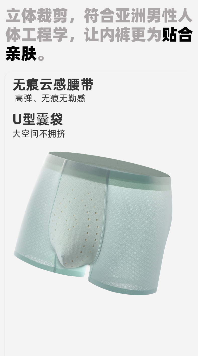源头工厂现货正品牡蛎抑菌轻薄冰丝无痕碎花男士内裤负离子冲孔