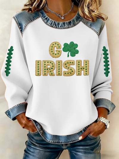2026春季跨境新款卫衣3D数码印花女士圣帕节三叶草圆领卫衣订货