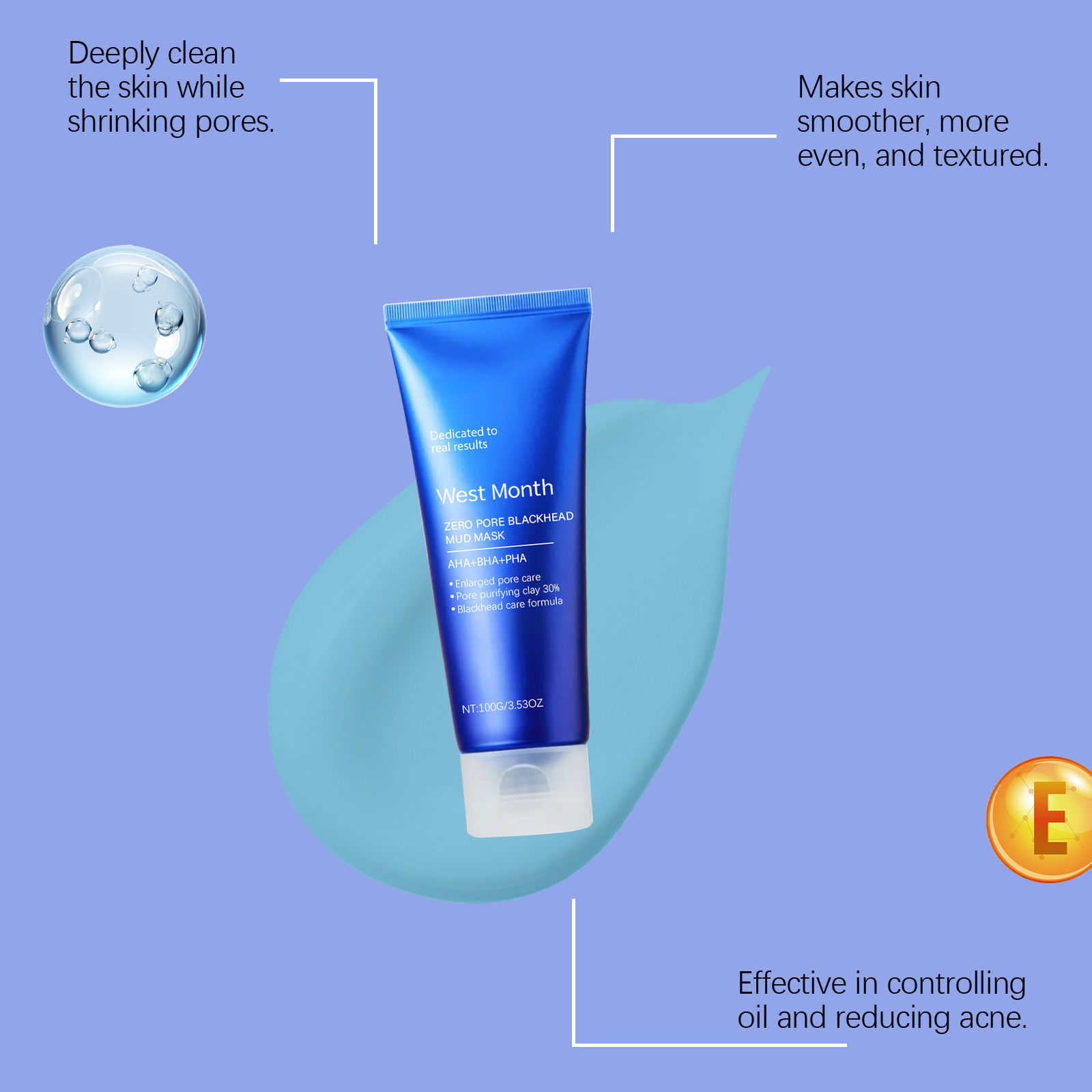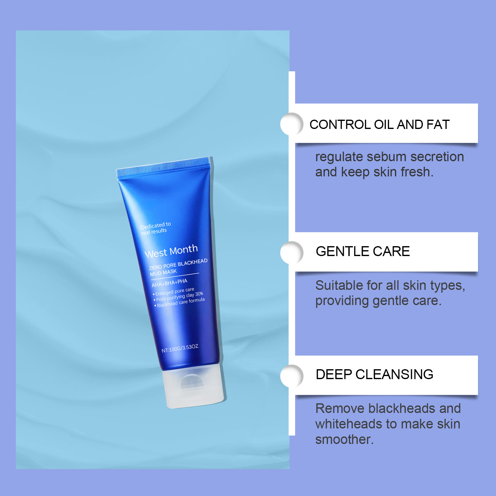 WEST MONTH黑头涂抹泥膜 清洁面部皮肤温和清洁泥膜